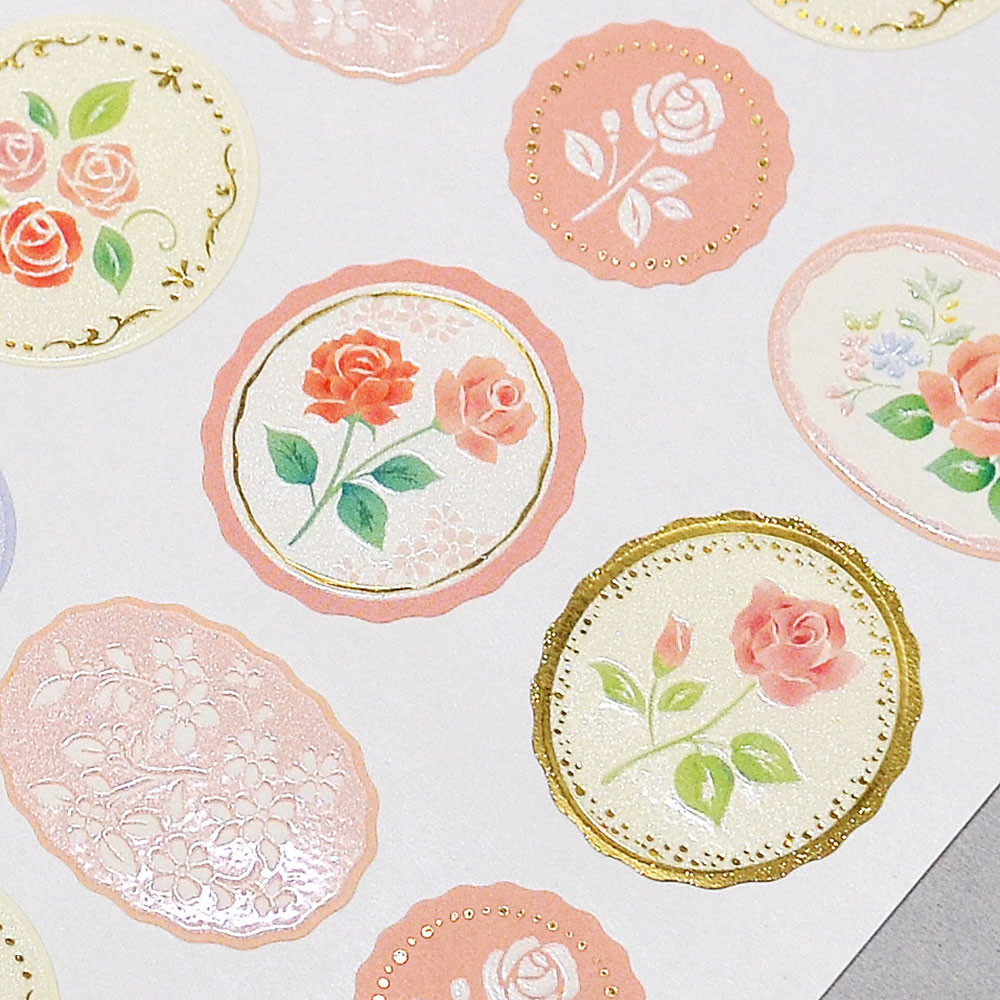 パールと金箔が光の加減でキラキラ輝き、エンボスで立体感を出した華やかなシールです。