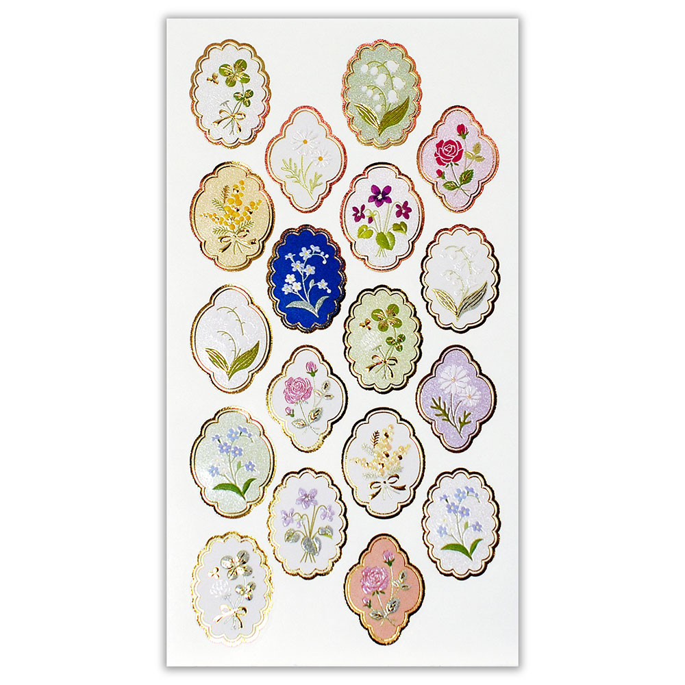 いろいろな種類の花々をアンティーク調のデザインであしらえ、和風でも洋風でもご利用いただけます。