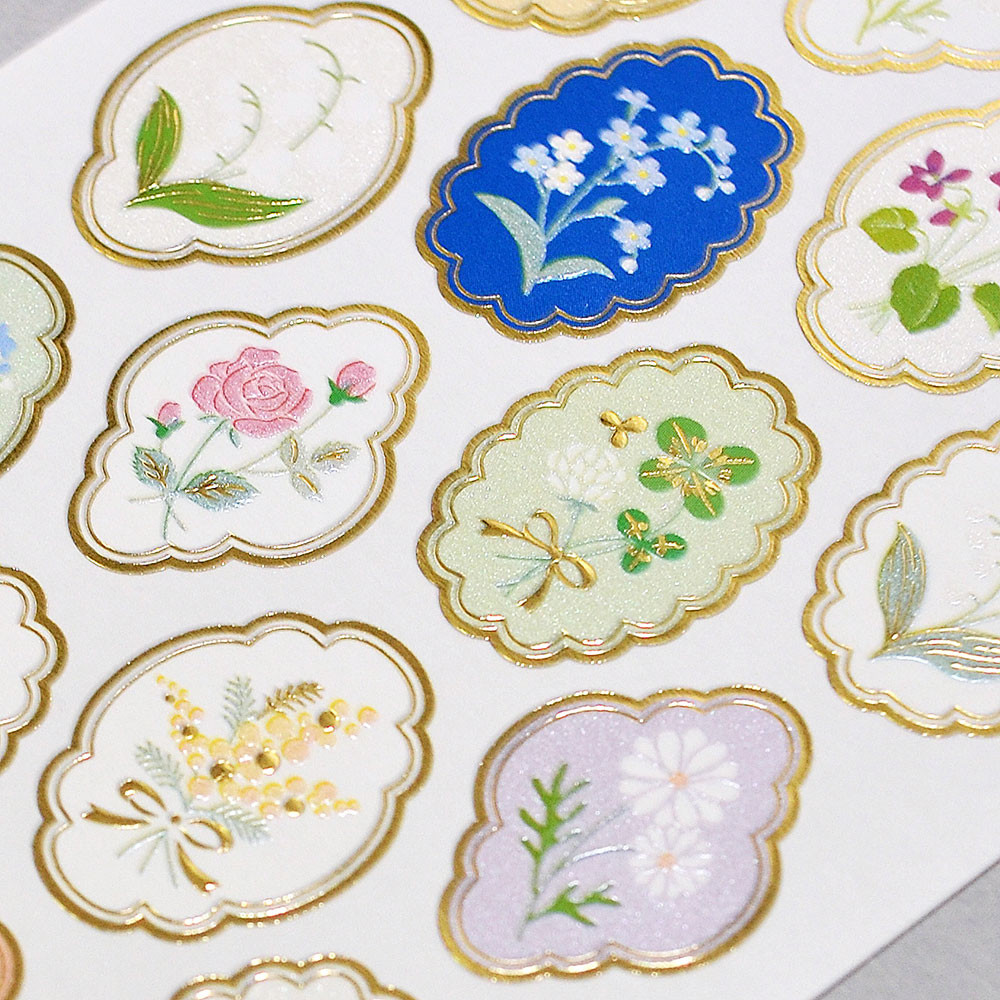 パールと金箔が光の加減でキラキラ輝き、エンボスで立体感を出した華やかなシールです。