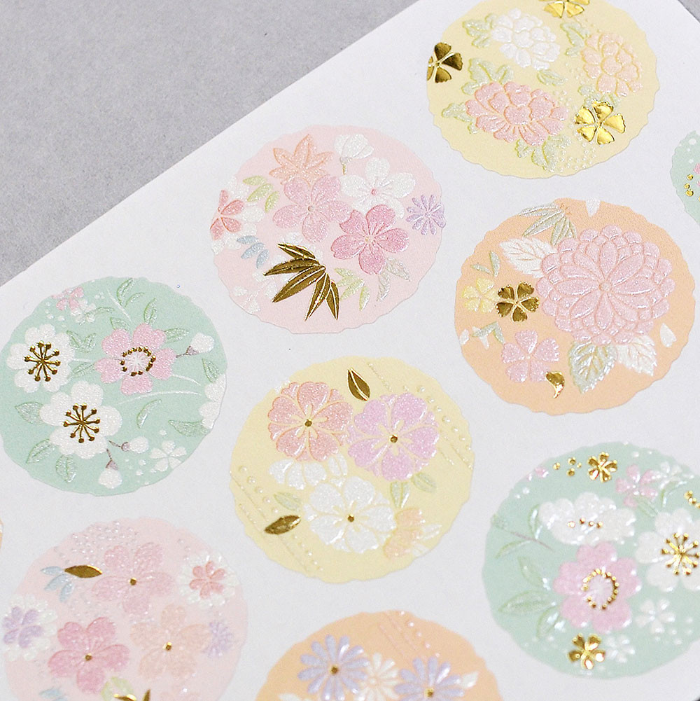 パールと金箔が光の加減でキラキラ輝き、エンボスで立体感を出した華やかなシールです。