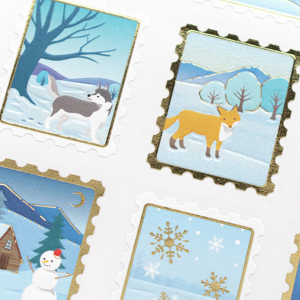 パールと金箔がキラキラ輝き、エンボスで立体感を出した華やかな冬柄シールです。
