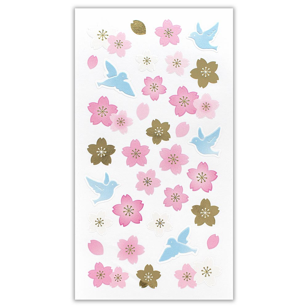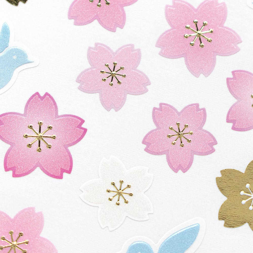 パールと金箔がキラキラ輝き、エンボスで立体感を出した華やかな春柄シールです。