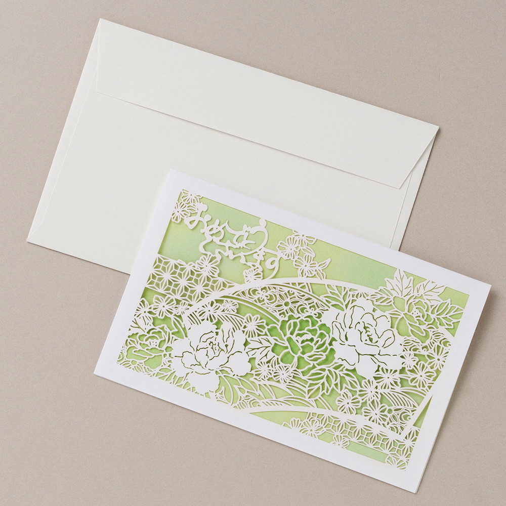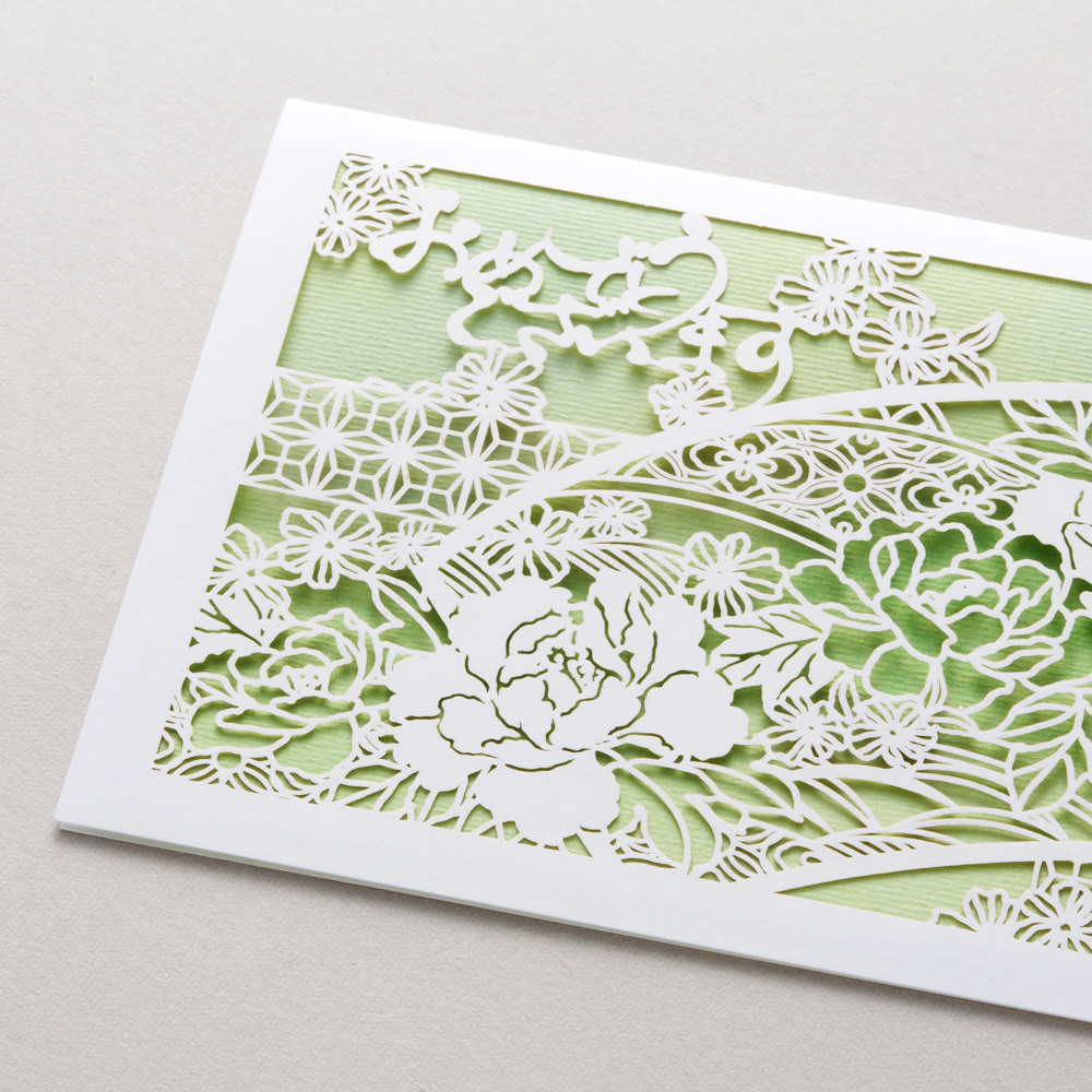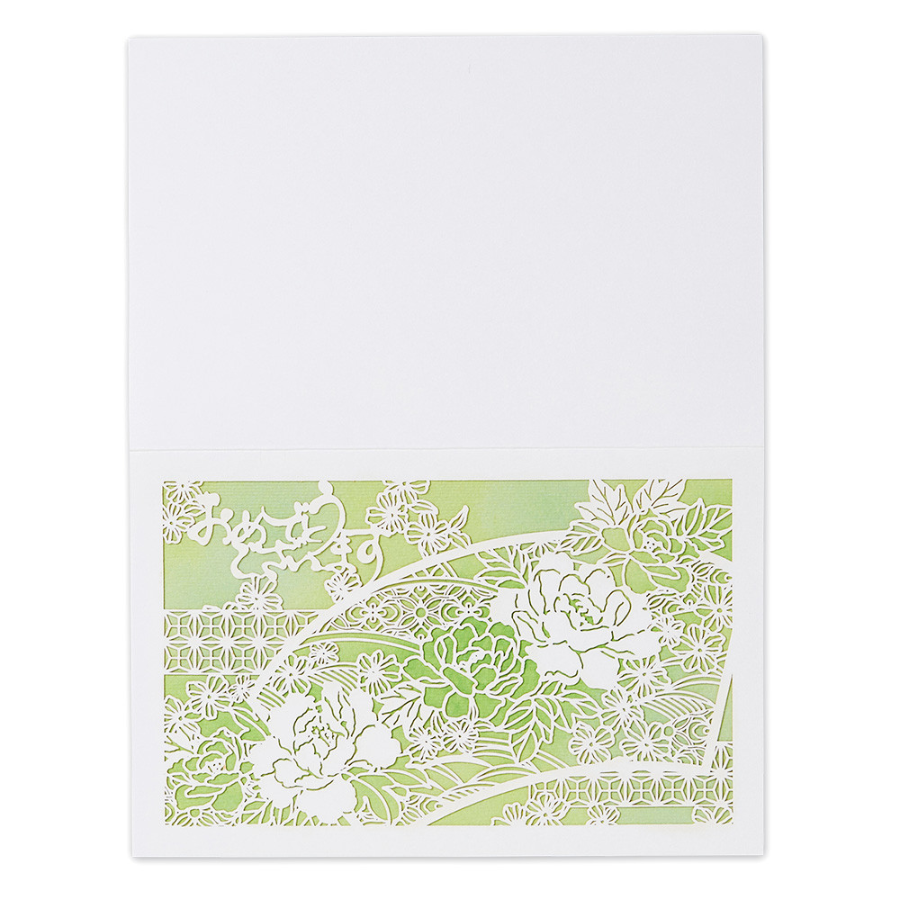 和風の花々をモチーフにした、お祝い事に使えるカードです。 丁寧な言葉の題字ですので、目上の方に贈るのにもおすすめです。