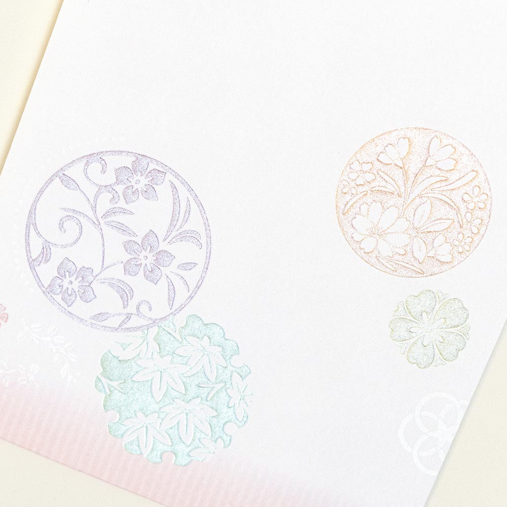 日本の花々の紋様をちりばめた、落ち着きのあるデザインです。