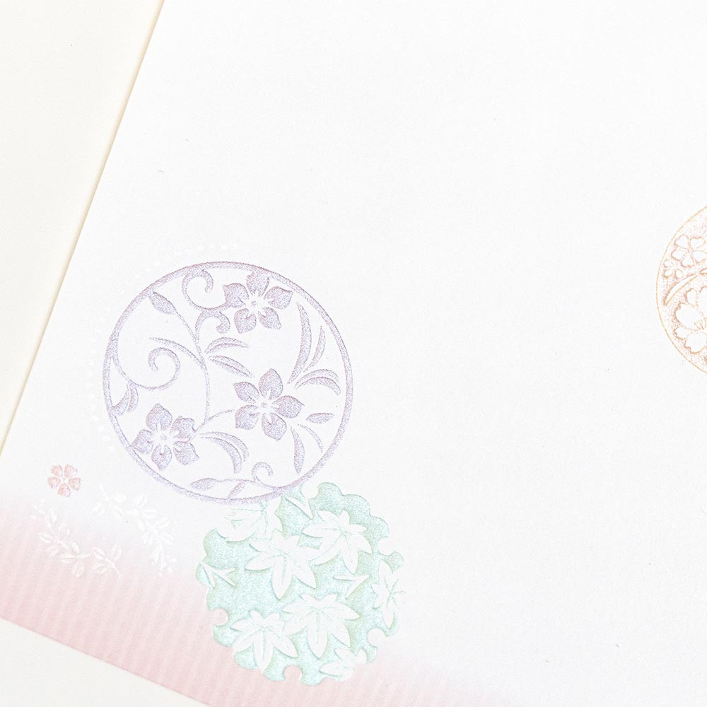 日本の花々の紋様をちりばめた、落ち着きのあるデザインです。