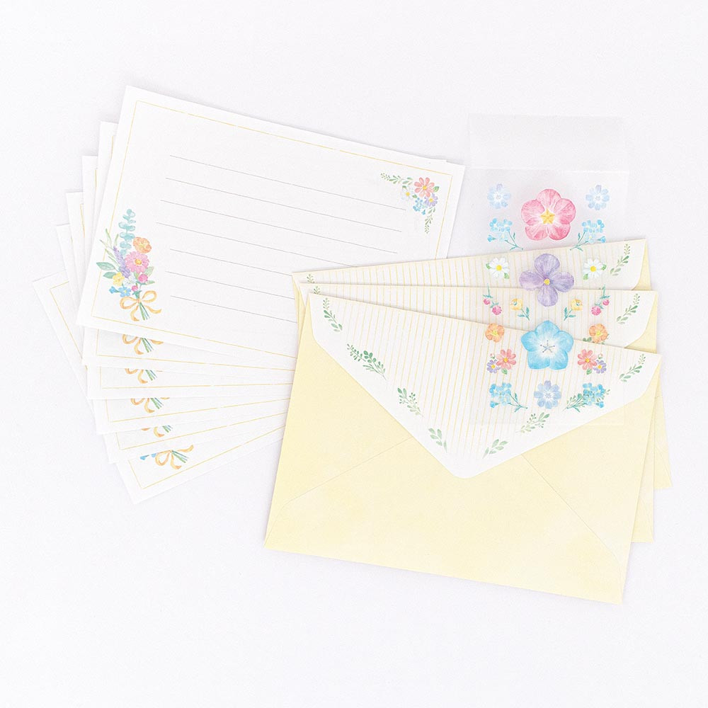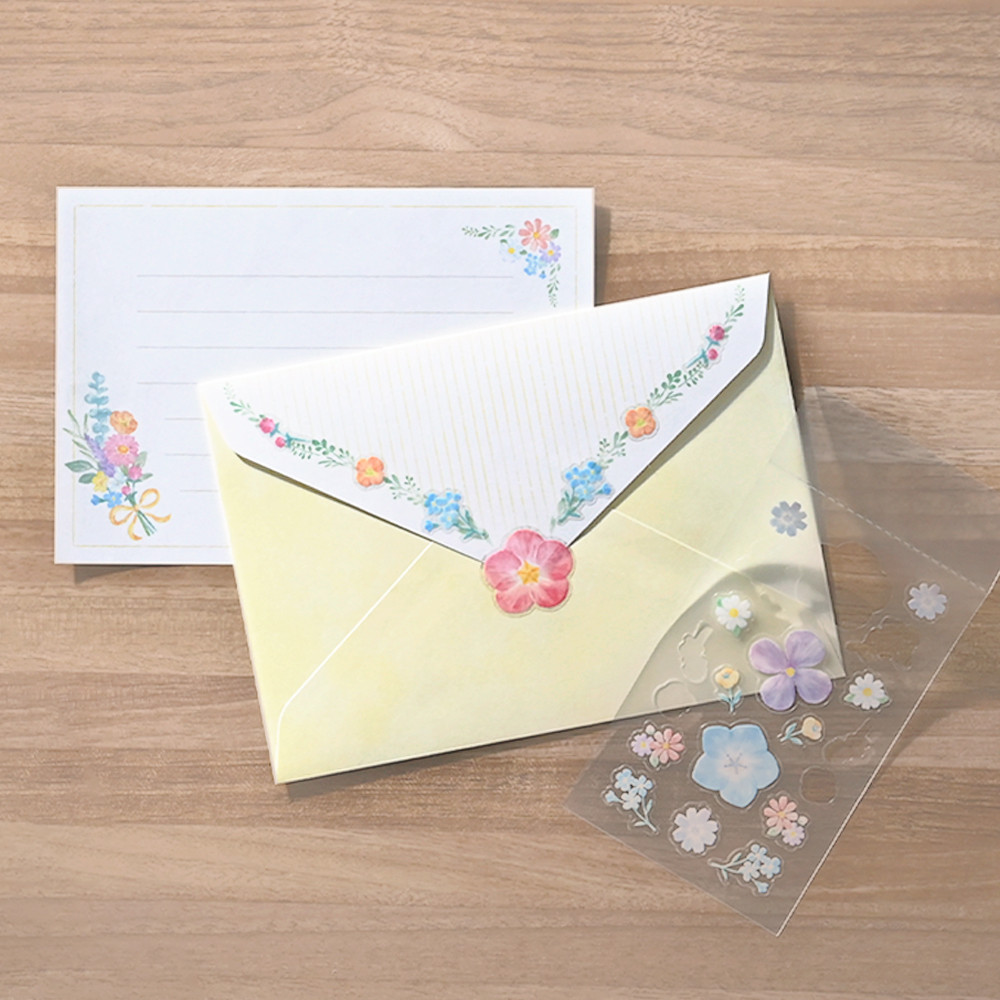 封筒を彩るシール付のミニレターセットです。