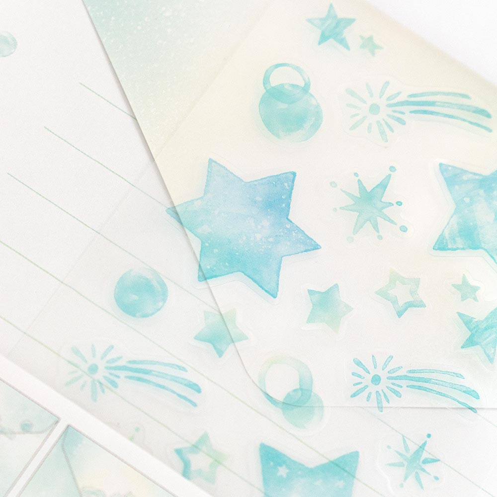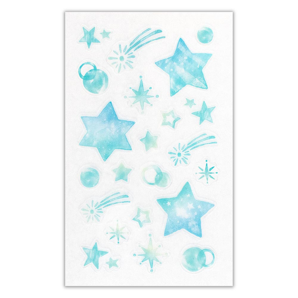 星、キラキラ、流れ星を爽やかに描きました。