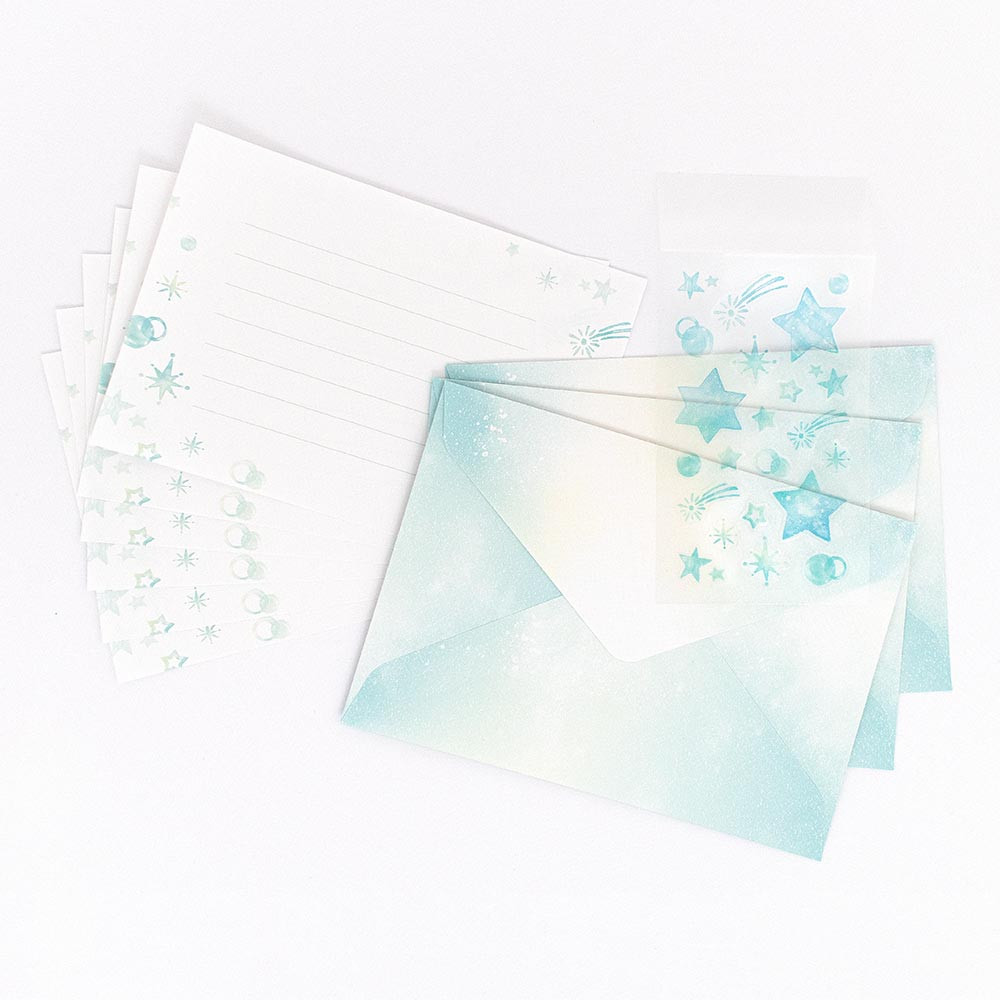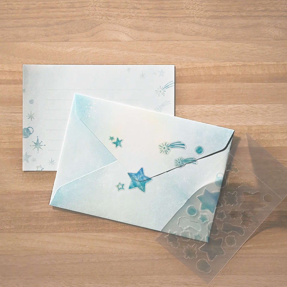 封筒を彩るシール付のミニレターセットです。