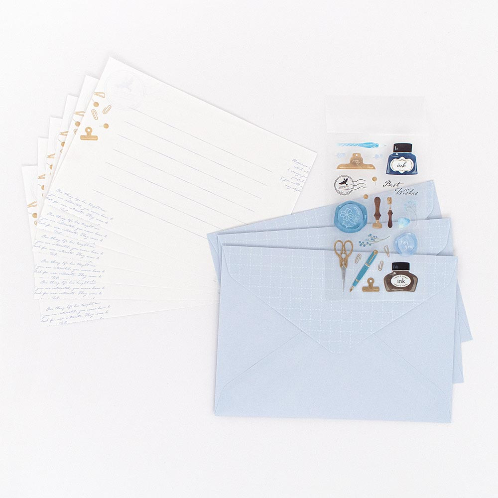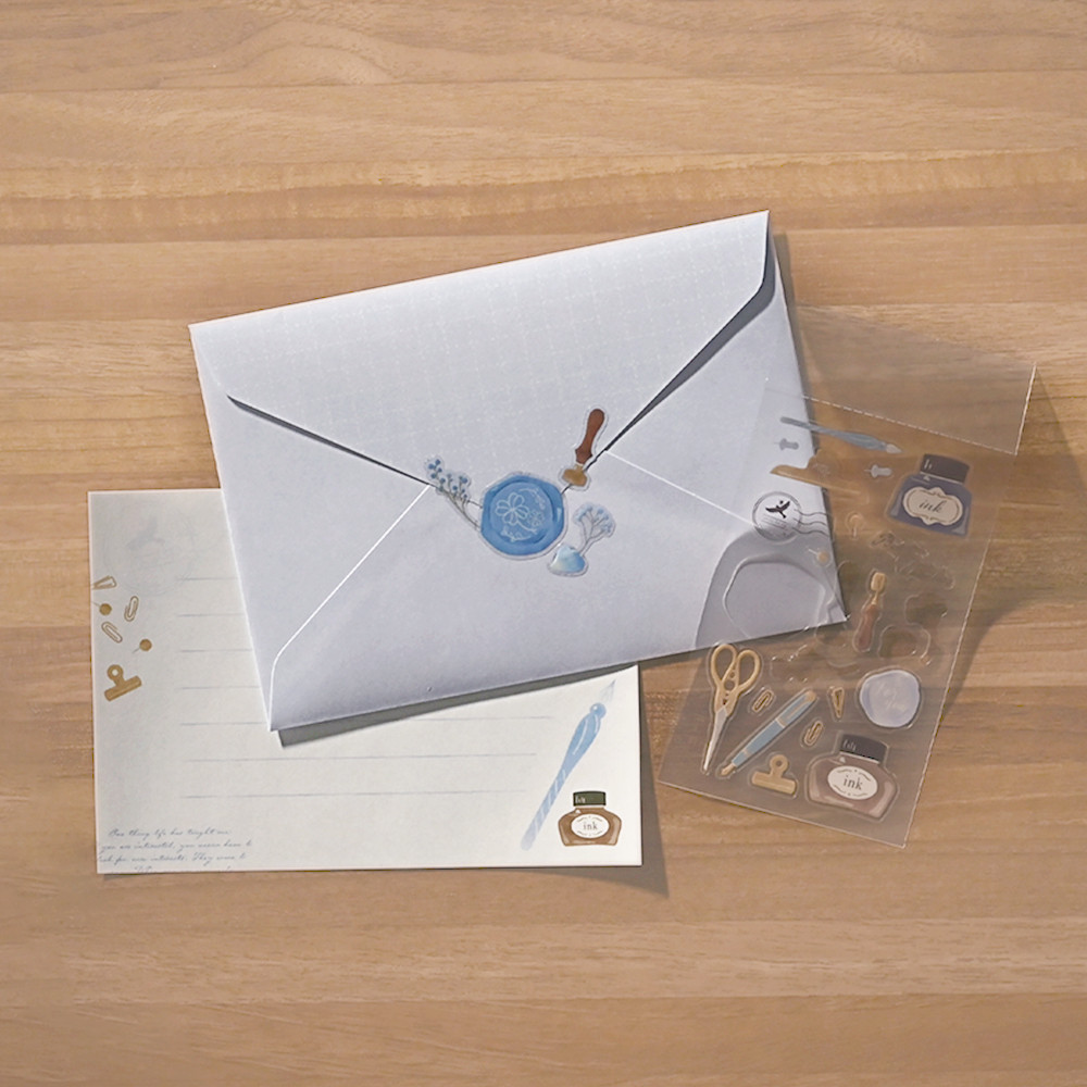 封筒を彩るシール付のミニレターセットです。