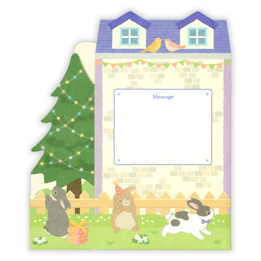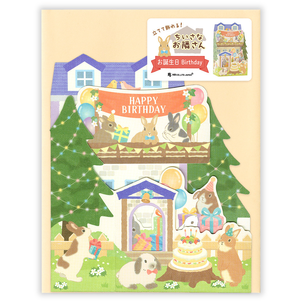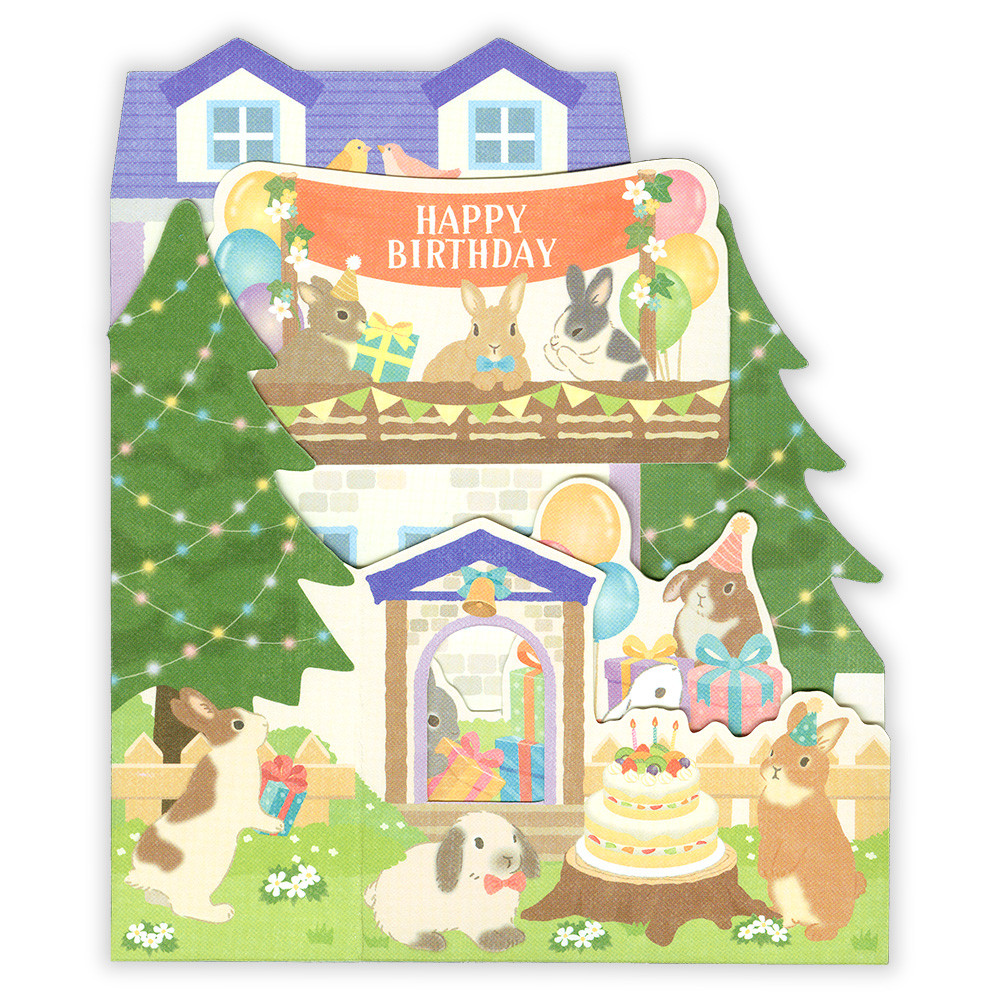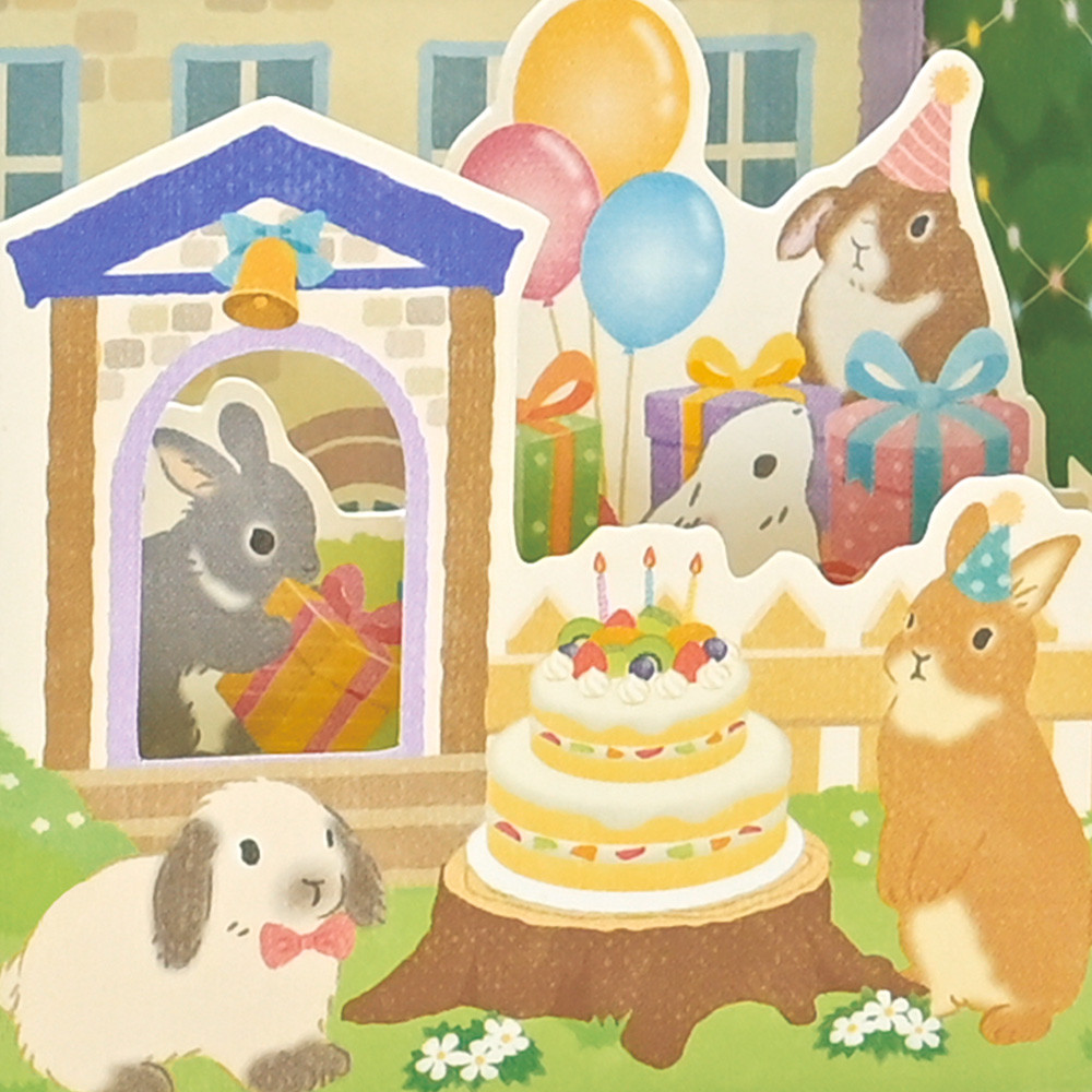 うさぎたちがガーデンパーティーを開いて誕生日をお祝いしてくれるデザインです。