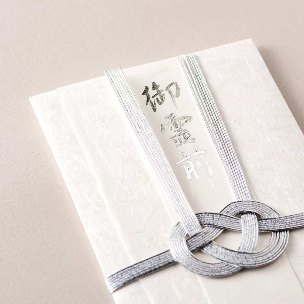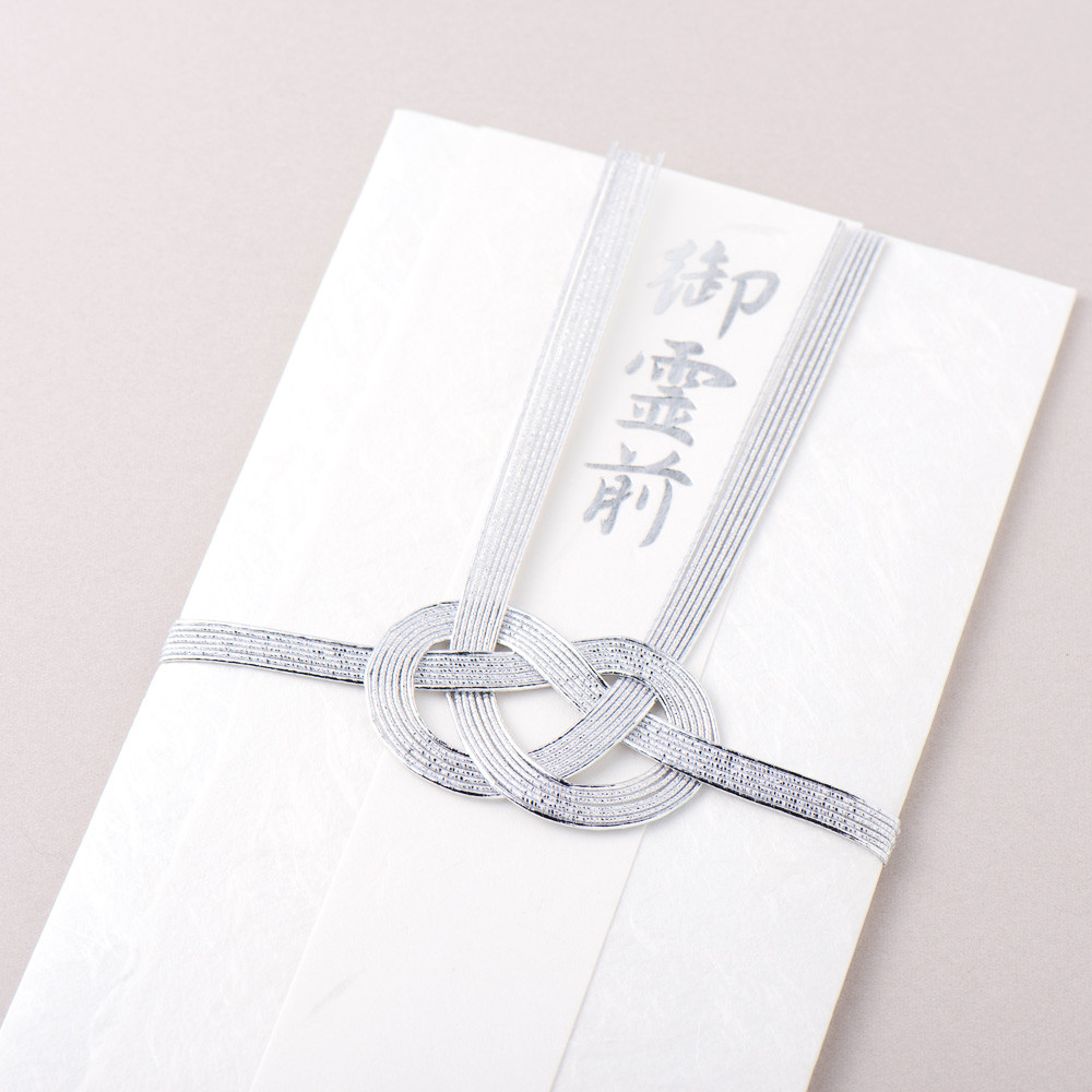 贈る金額の目安は5万円~です。短冊4種類入で様々な用途にお使いいただけます。(御霊前・御香典・御佛前・無地)