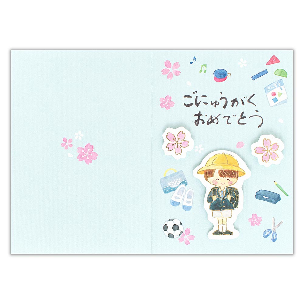 筆文字の心温まるメッセージが伝わる、小学校入学お祝い用のカードです。