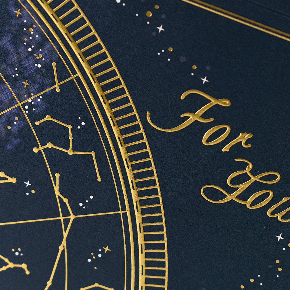 金箔押し加工を贅沢に用いた、大人の方にお勧めのカードです。エンボス加工でさらに輝きを引き立てました。