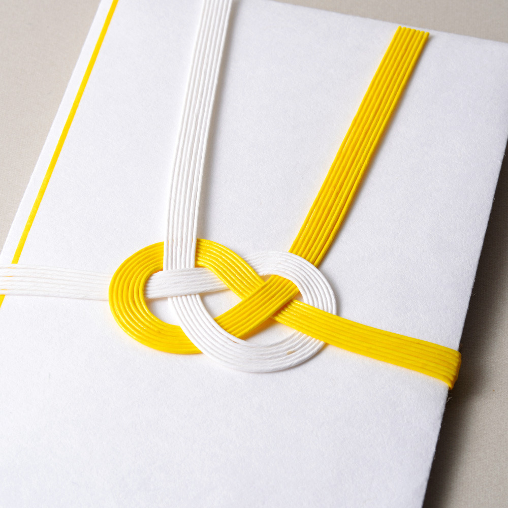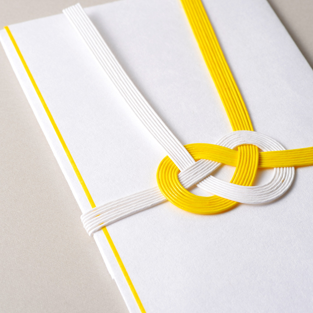 白と黄色の仏事に使う金封です。 主に関西地方でお使いいただける金封です。 お通夜・告別式・法要に弔問する際にお使いいただけます。