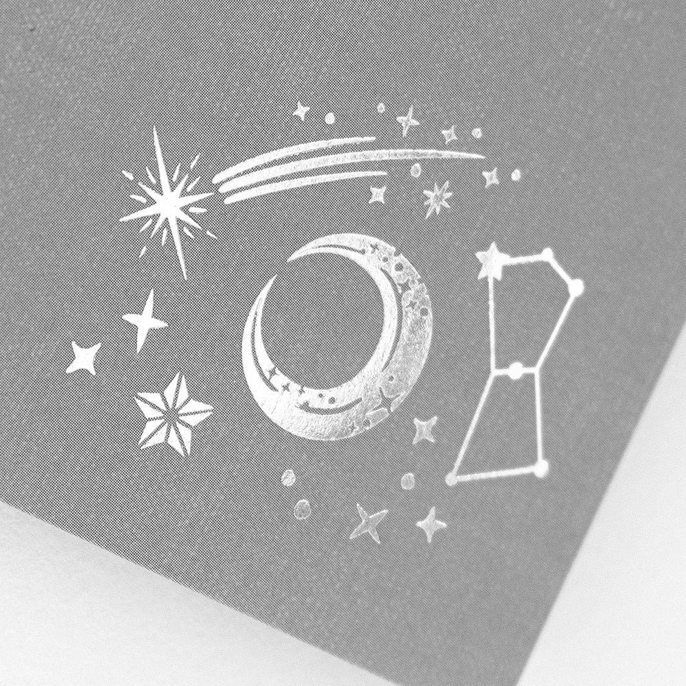 アクセントの銀箔押し加工がきらめきます。