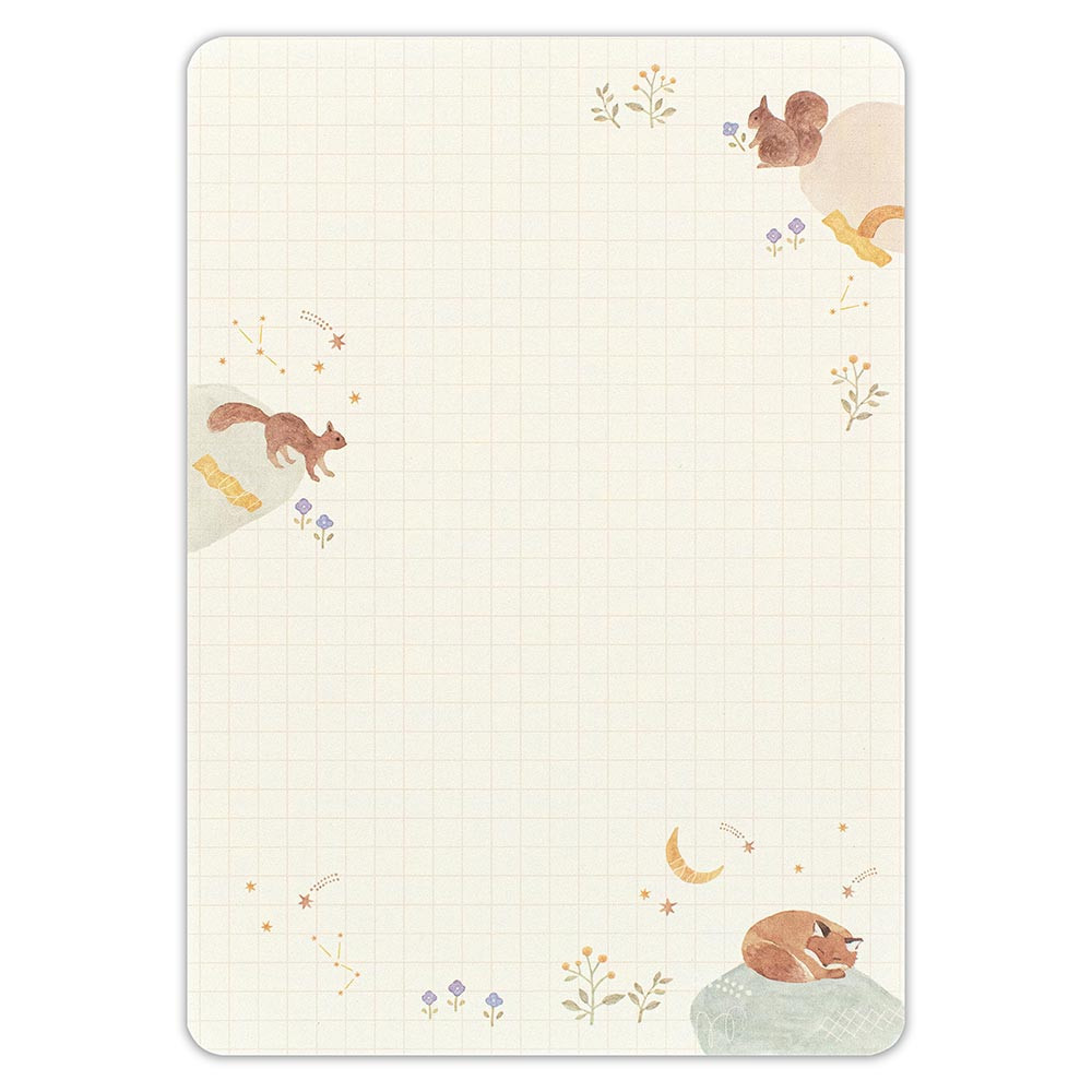 “星の見える丘と動物”をイメージし、「三日月と流れ星」「リスとキツネ」「丘に咲く野の花」をキーワードに描きました。