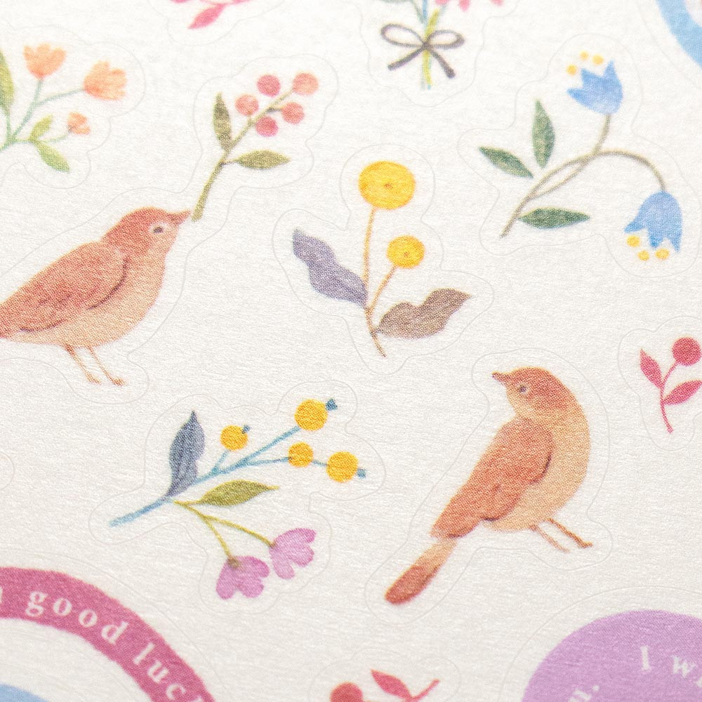 “小鳥や花々に彩られた庭”をイメージし、「さえずる小鳥たち」「優しく揺れる花々」「そよ風が吹く庭」をキーワードに描きました。