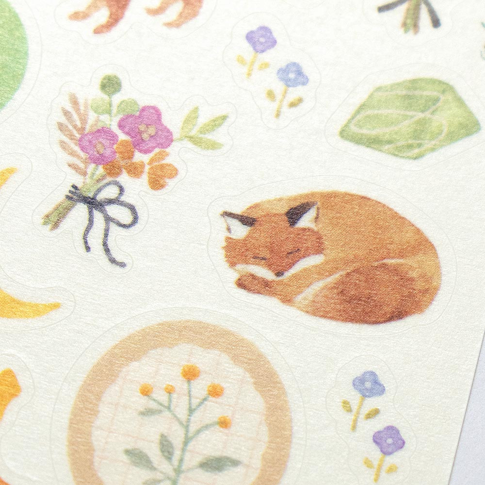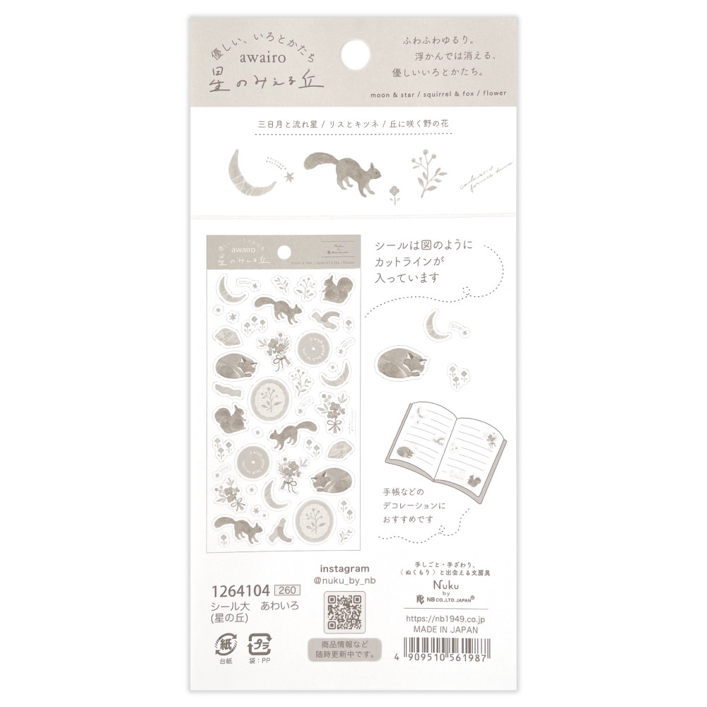 “星の見える丘と動物”をイメージし、「三日月と流れ星」「リスとキツネ」「丘に咲く野の花」をキーワードに描きました。