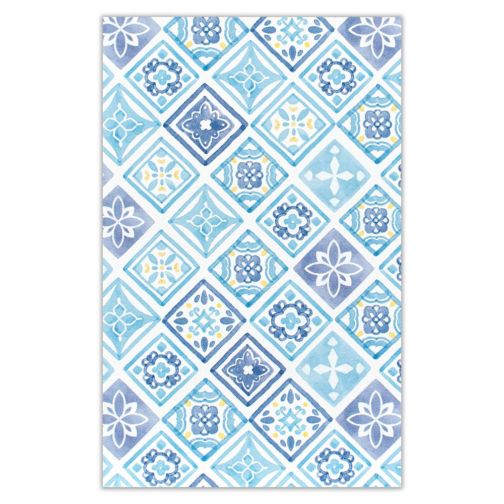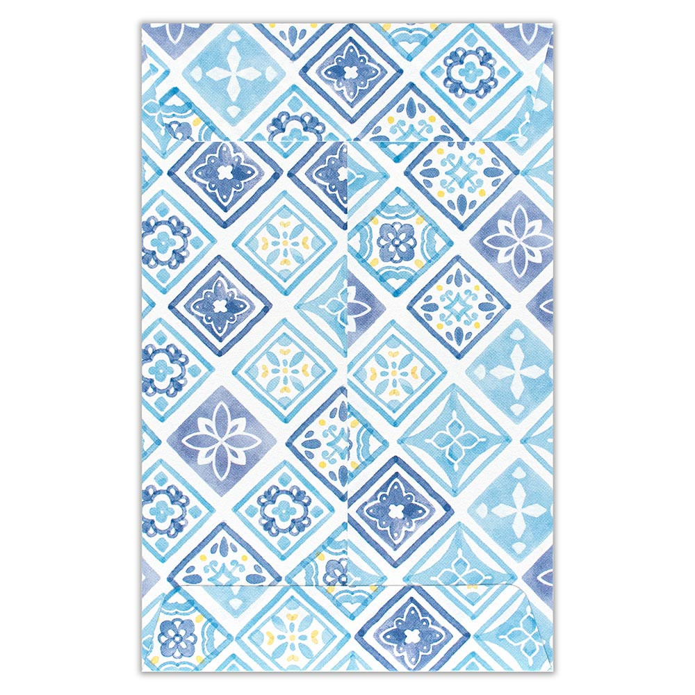 爽やかなブルーで草花・タイル・水玉・にじみを描きました。シーンに合わせて柄をお選びいただけます。