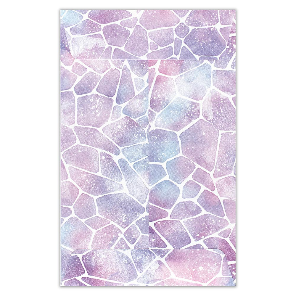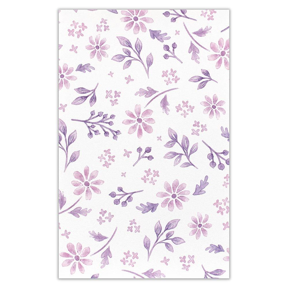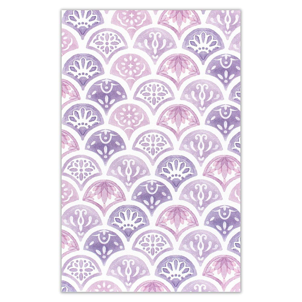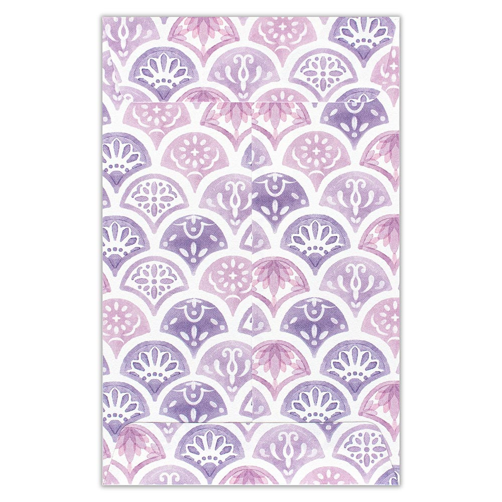 優しいパープルで草花・タイル・こはく糖・にじみを描きました。シーンに合わせて柄をお選びいただけます。