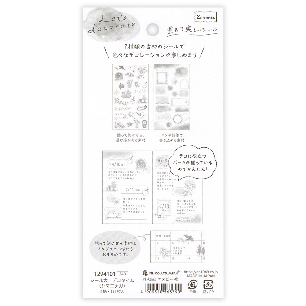 2種類の素材のシールを重ねて色々なデコレーションが楽しめます。