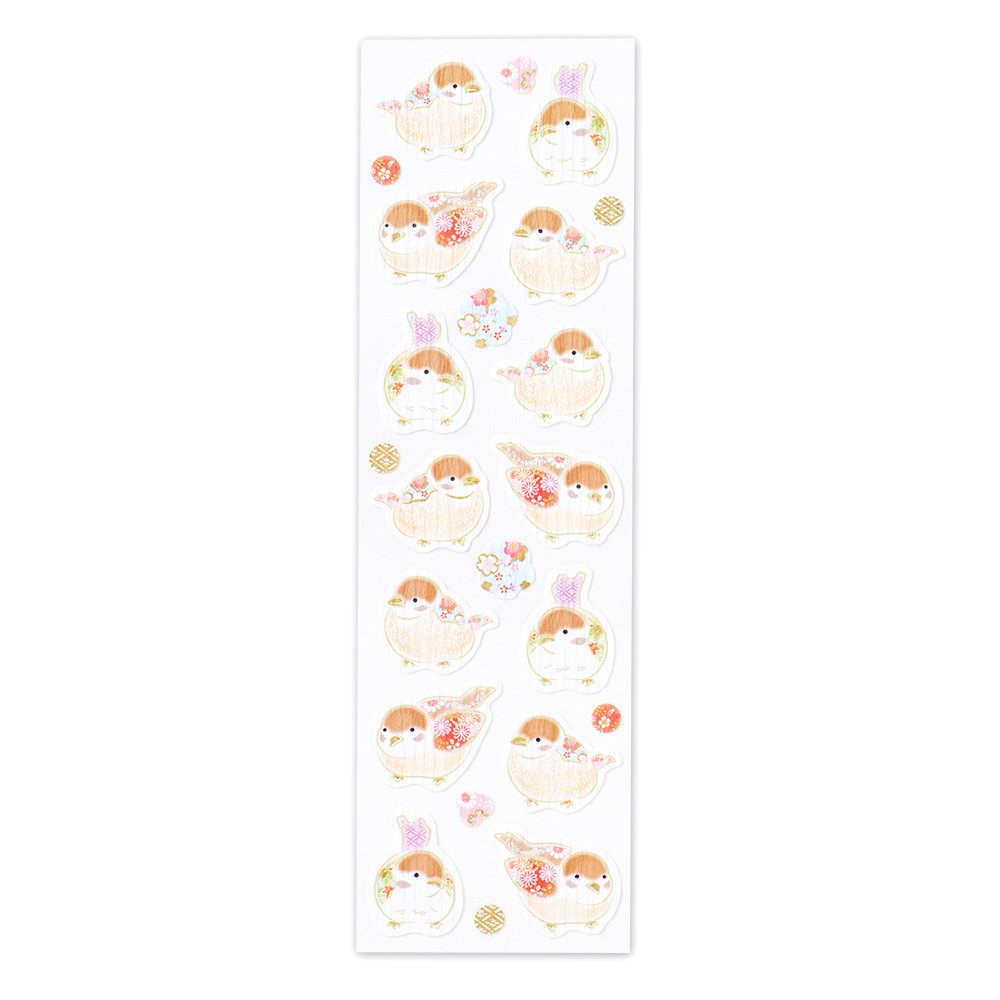 羽に友禅模様が描かれたすずめが印象的です。【鳥】【動物】