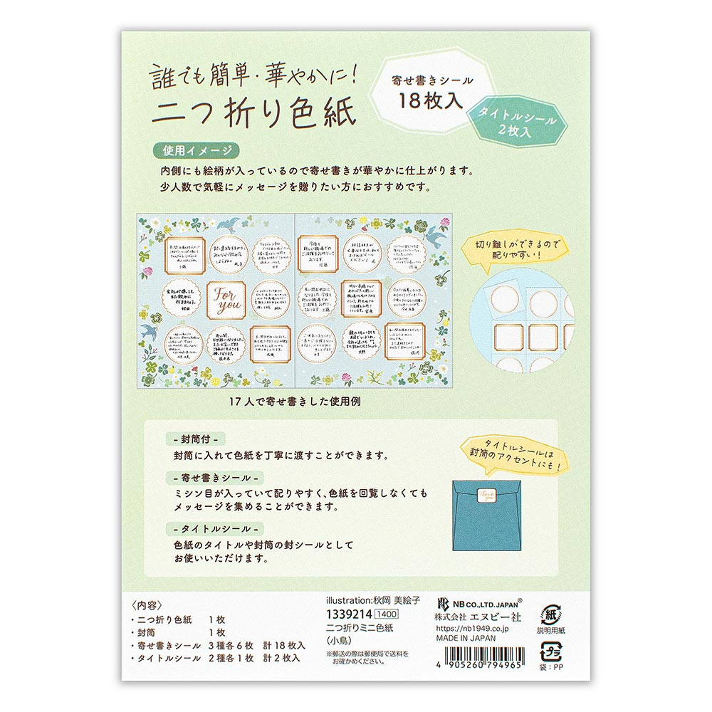 18枚の寄せ書きシール入りで、色紙を回さなくても寄せ書きを集めることができます。ミシン目が入っているので切り離しやすいのもポイント。