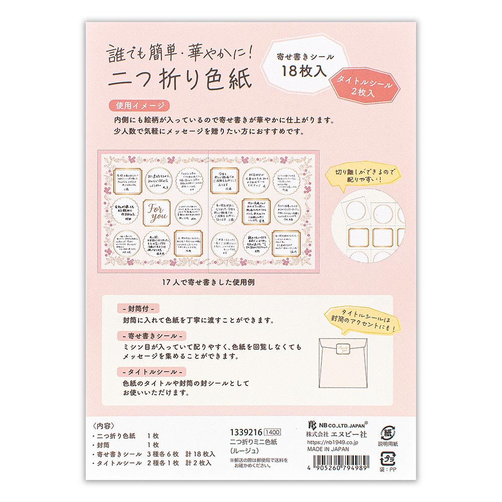 18枚の寄せ書きシール入りで、色紙を回さなくても寄せ書きを集めることができます。ミシン目が入っているので切り離しやすいのもポイント。