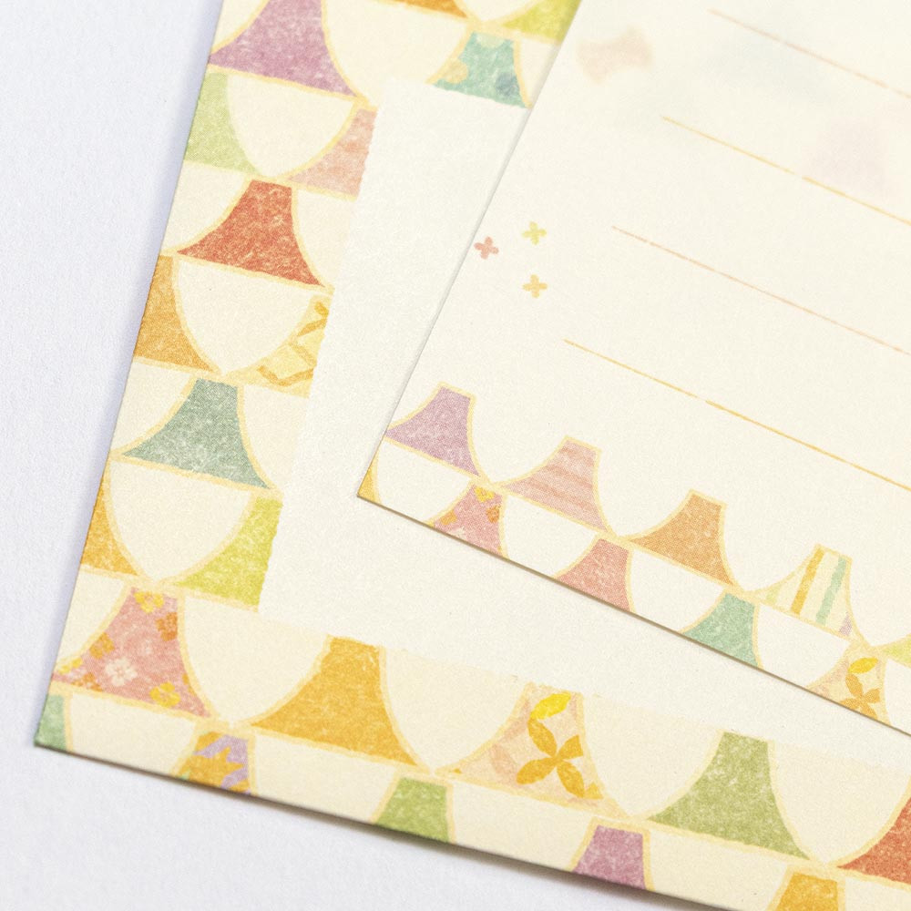 WANOWA…ほっこりした和柄で、人の輪が広がり和やかな気持ちになれます。心がちょっと豊かになるひとときを大切にしたいという想いを込めました。和紙の温かみを感じる、ミニサイズのレターセットです。
