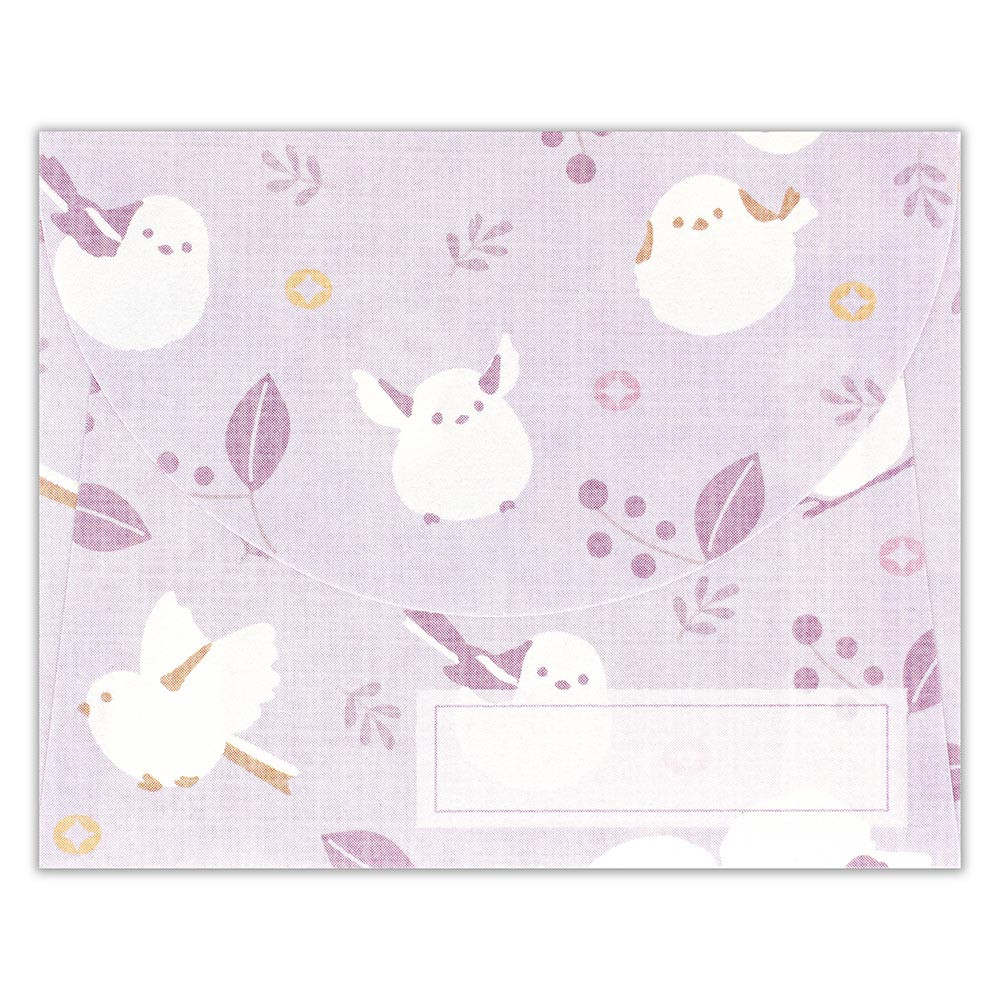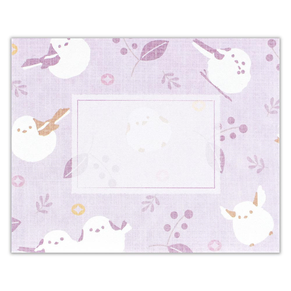 雪の妖精シマエナガや、縁起の良い和紋様の「七宝」などのモチーフが描かれています。