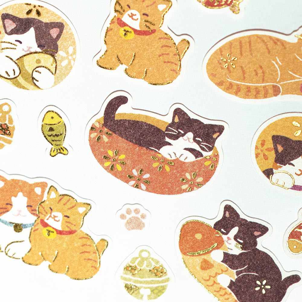 風合いのある和紙に金箔が輝く、和風のシールです。
