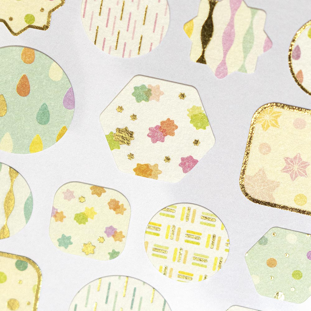 風合いのある和紙に金箔が輝く、和風のシールです。