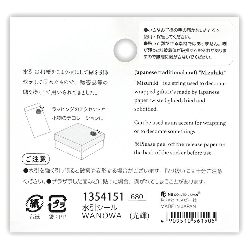 梅結びが可愛らしい色とりどりの水引シールです。様々な水引を組み合わせ、一つ一つ異なる色合いに仕上げました。