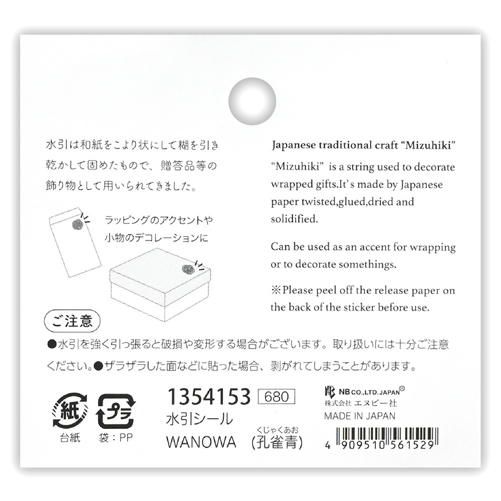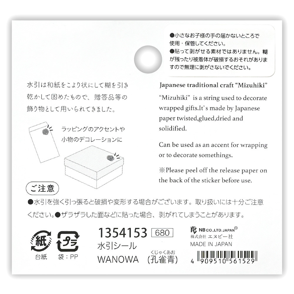 梅結びが可愛らしい色とりどりの水引シールです。様々な水引を組み合わせ、一つ一つ異なる色合いに仕上げました。