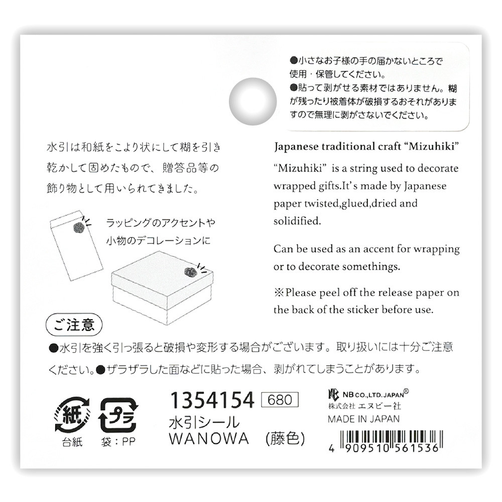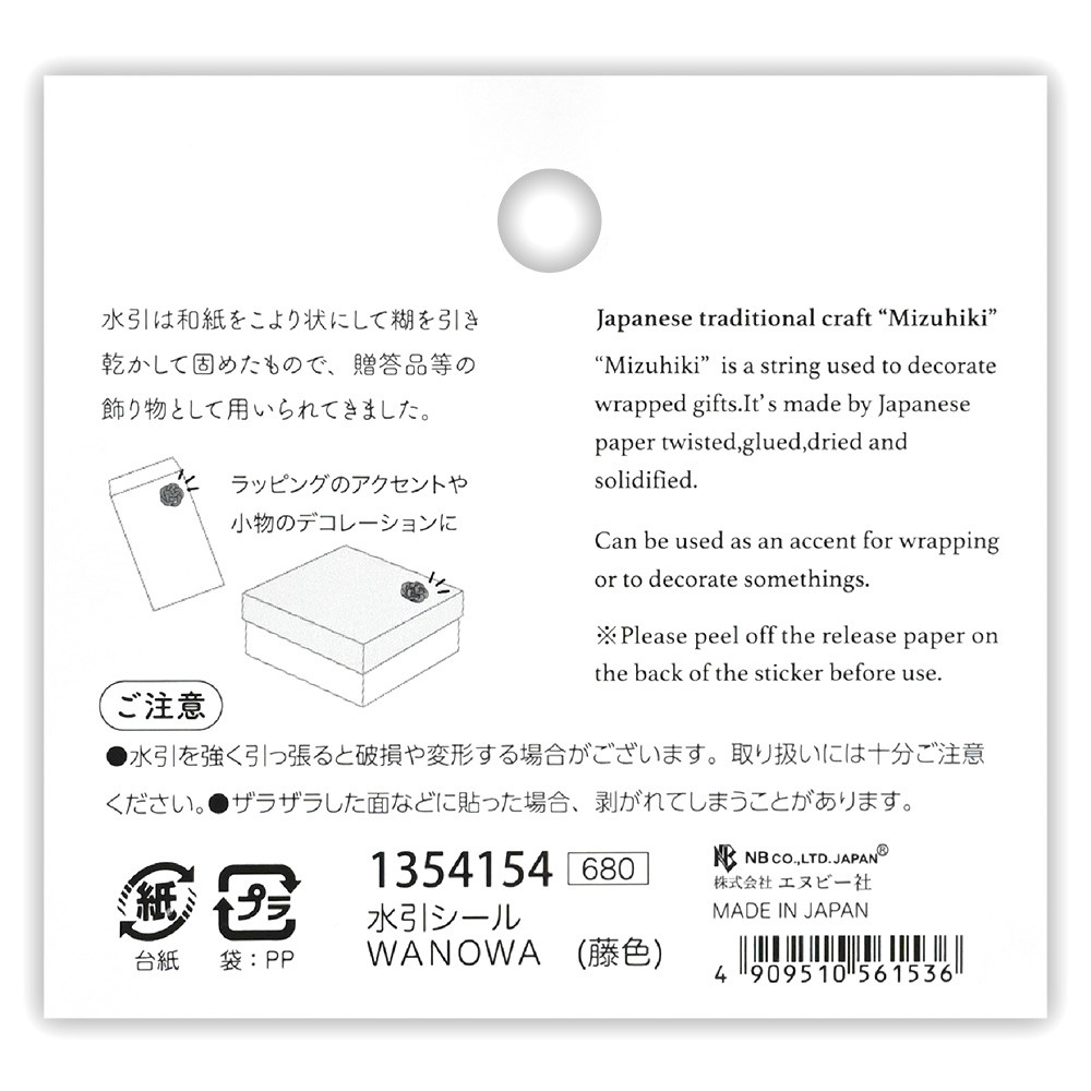 梅結びが可愛らしい色とりどりの水引シールです。様々な水引を組み合わせ、一つ一つ異なる色合いに仕上げました。