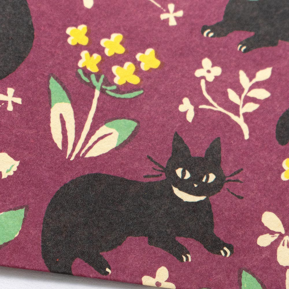 黒猫と野の花をシックなカラーでデザインしました。