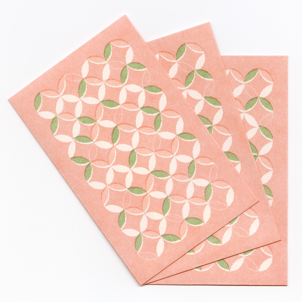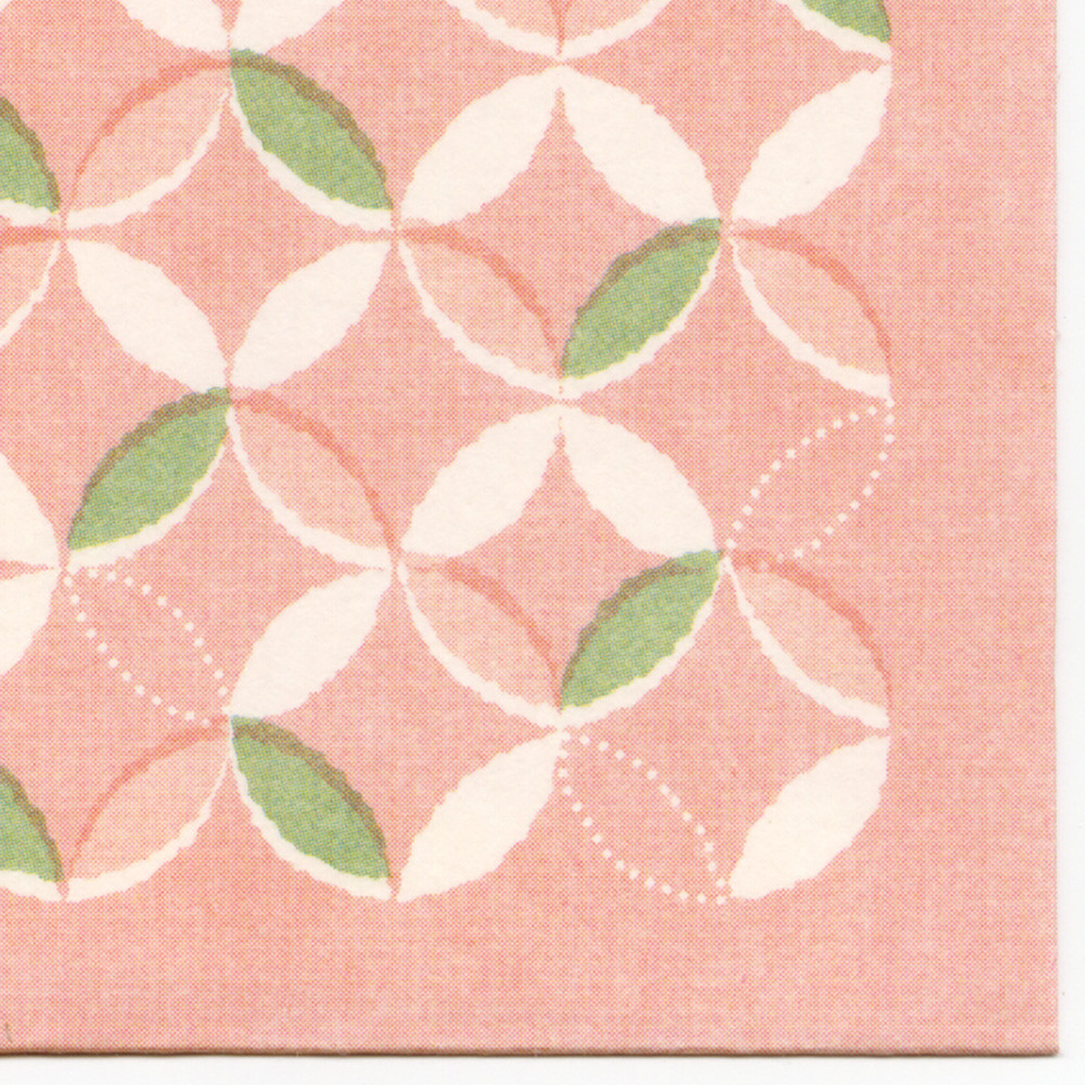 日常になじむ和の色と縁起のいい和紋様を組み合わせたデザイン。かわいらしい桜もち色で七宝柄を描きました。