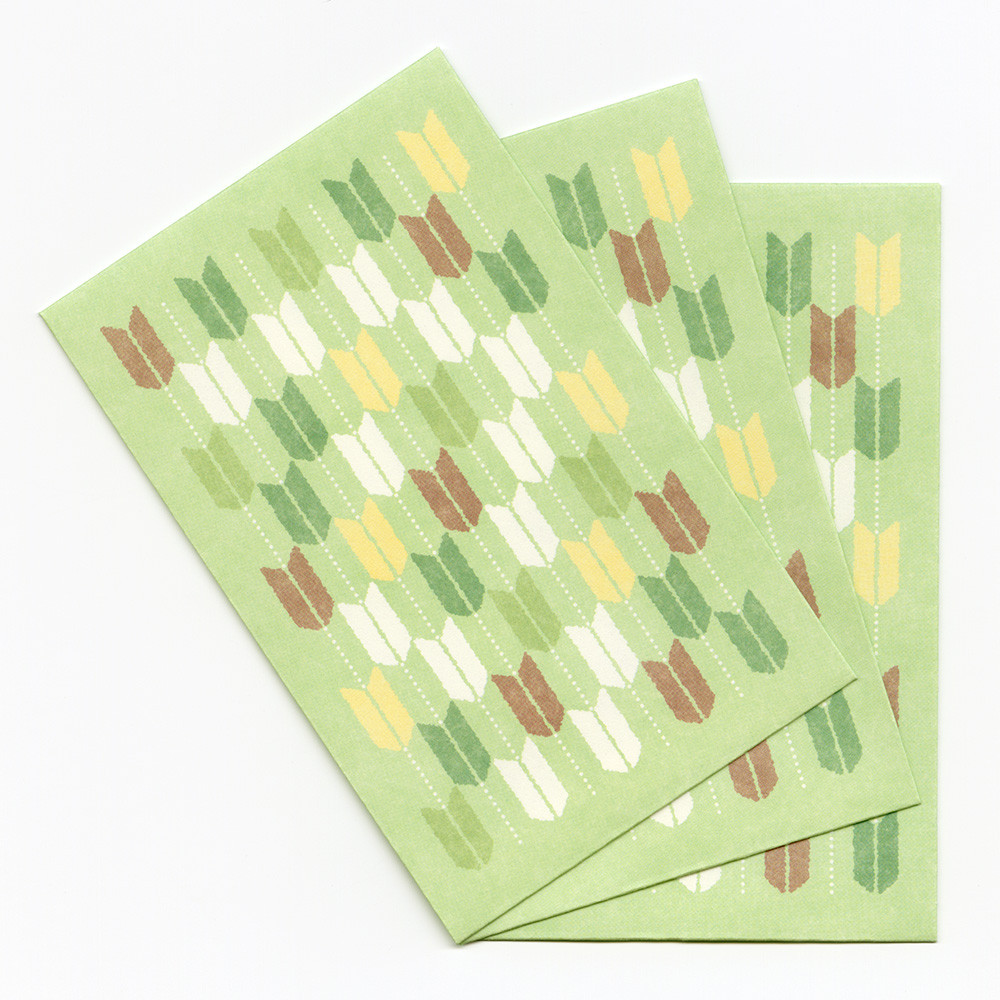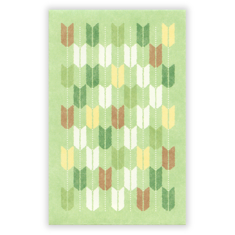 日常になじむ和の色と縁起のいい和紋様を組み合わせたデザイン。やさしい抹茶色で矢絣柄を描きました。