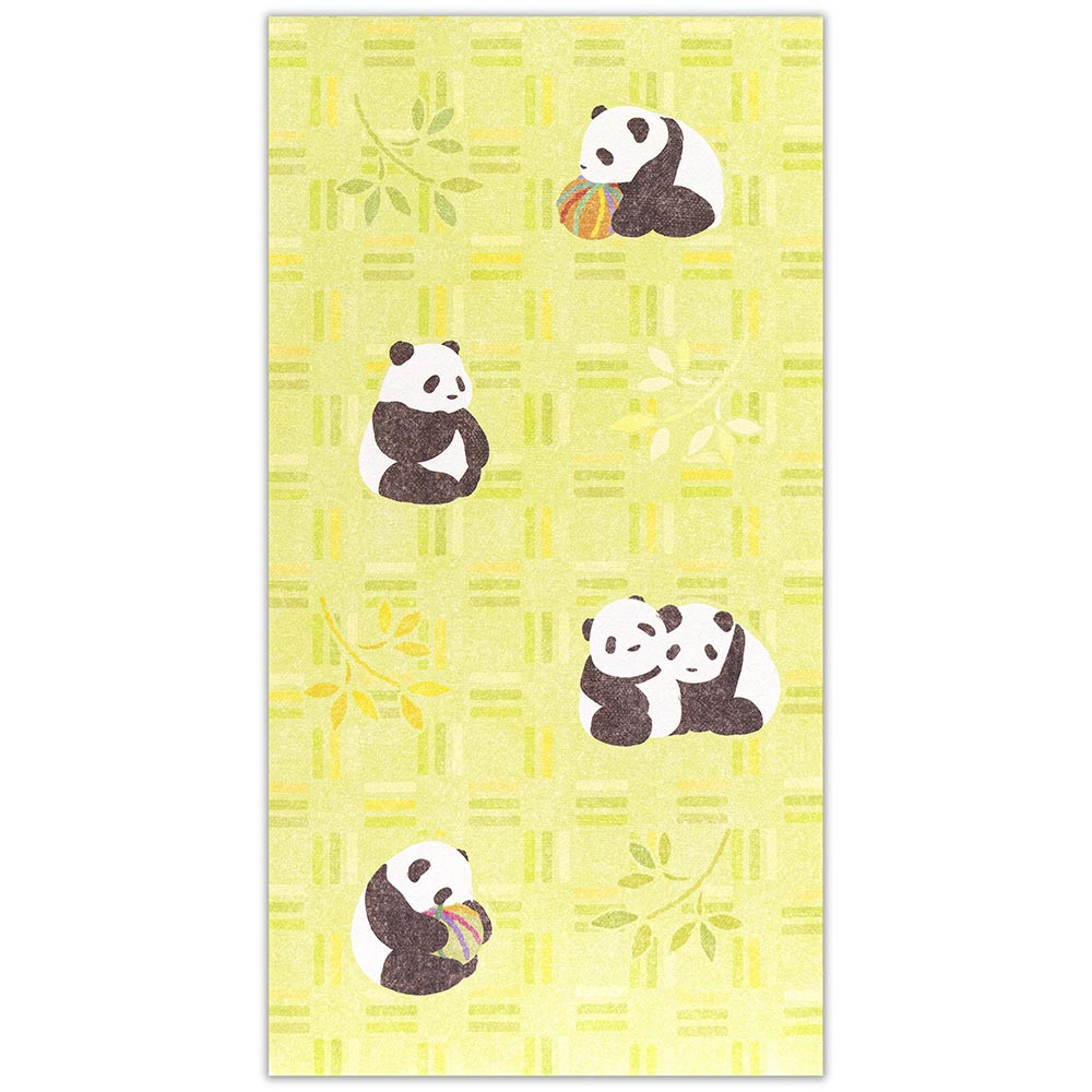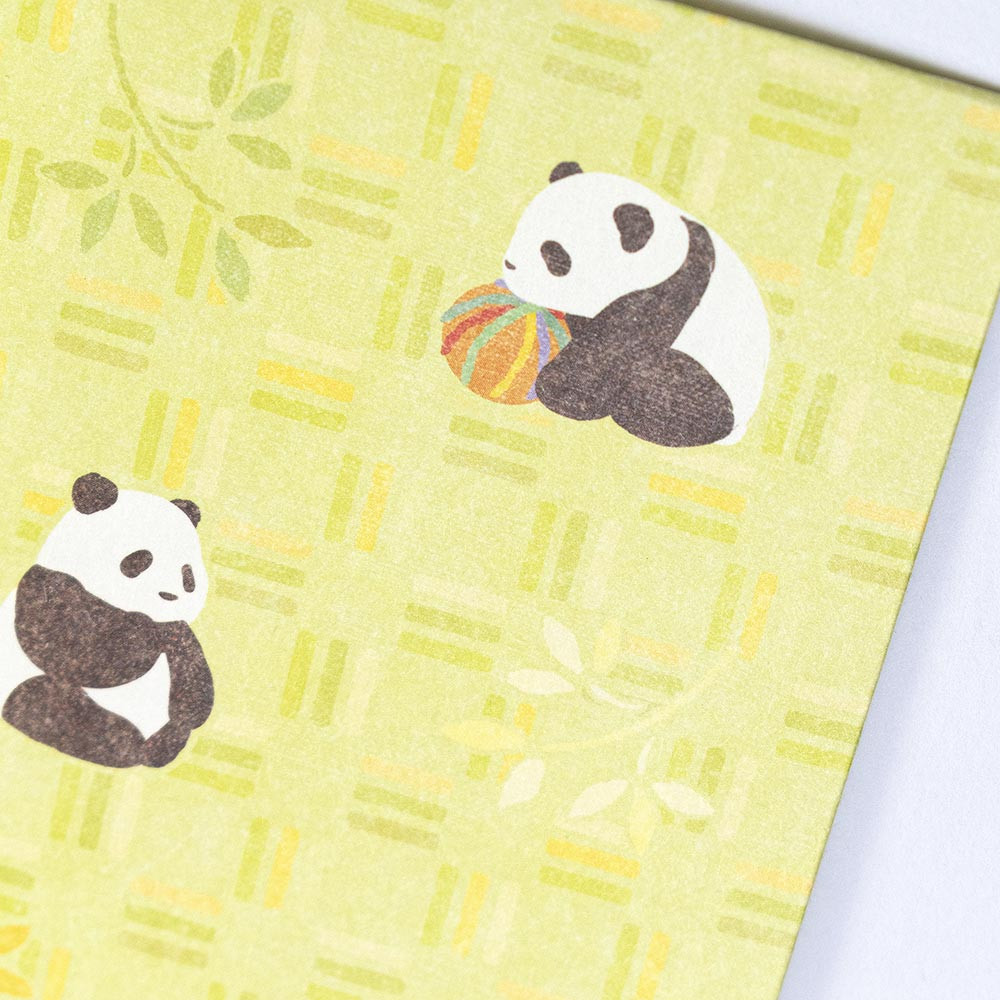 日本で古くから和の意匠に使われてきた割付文様のひとつ「三崩し」と、かわいいパンダを描きました。
