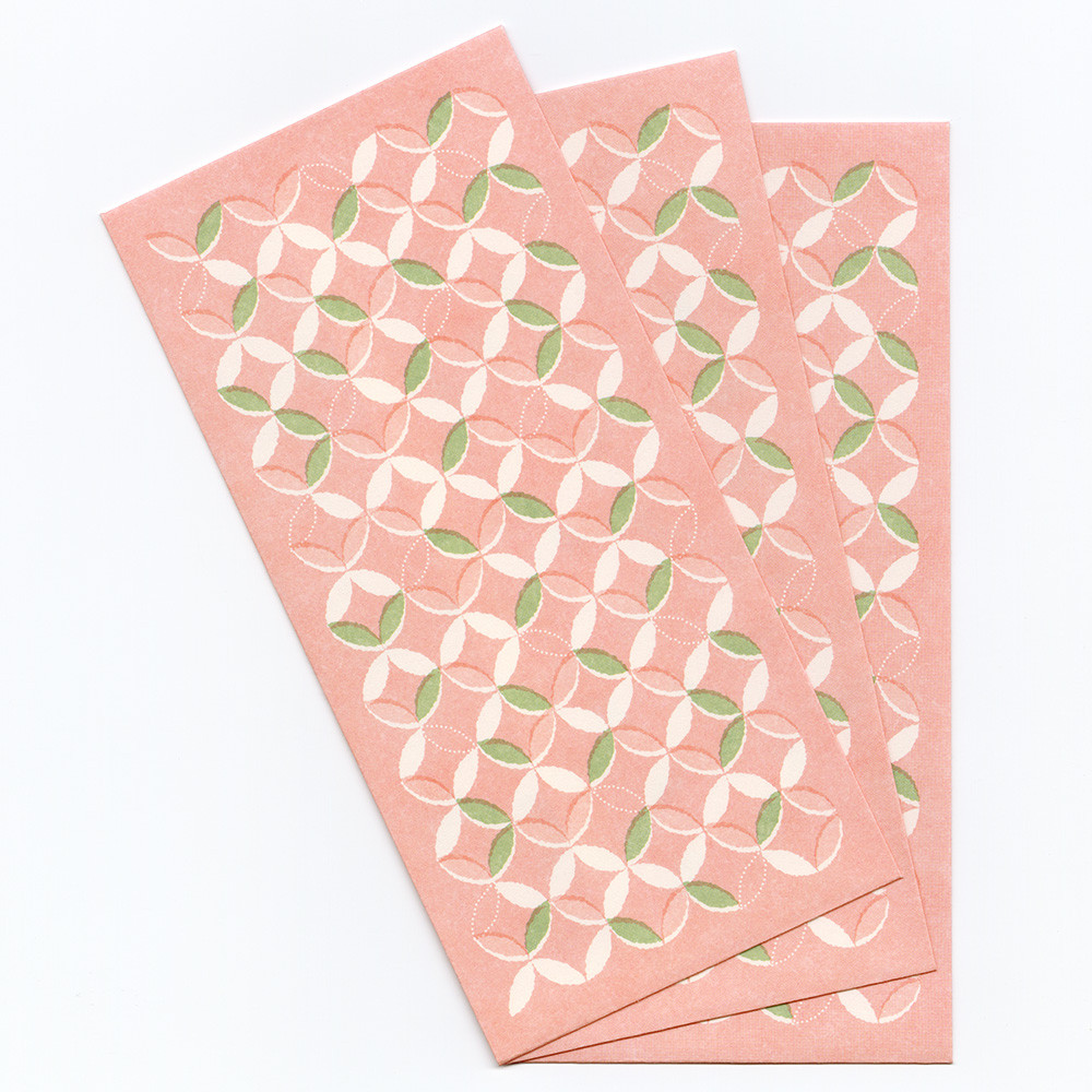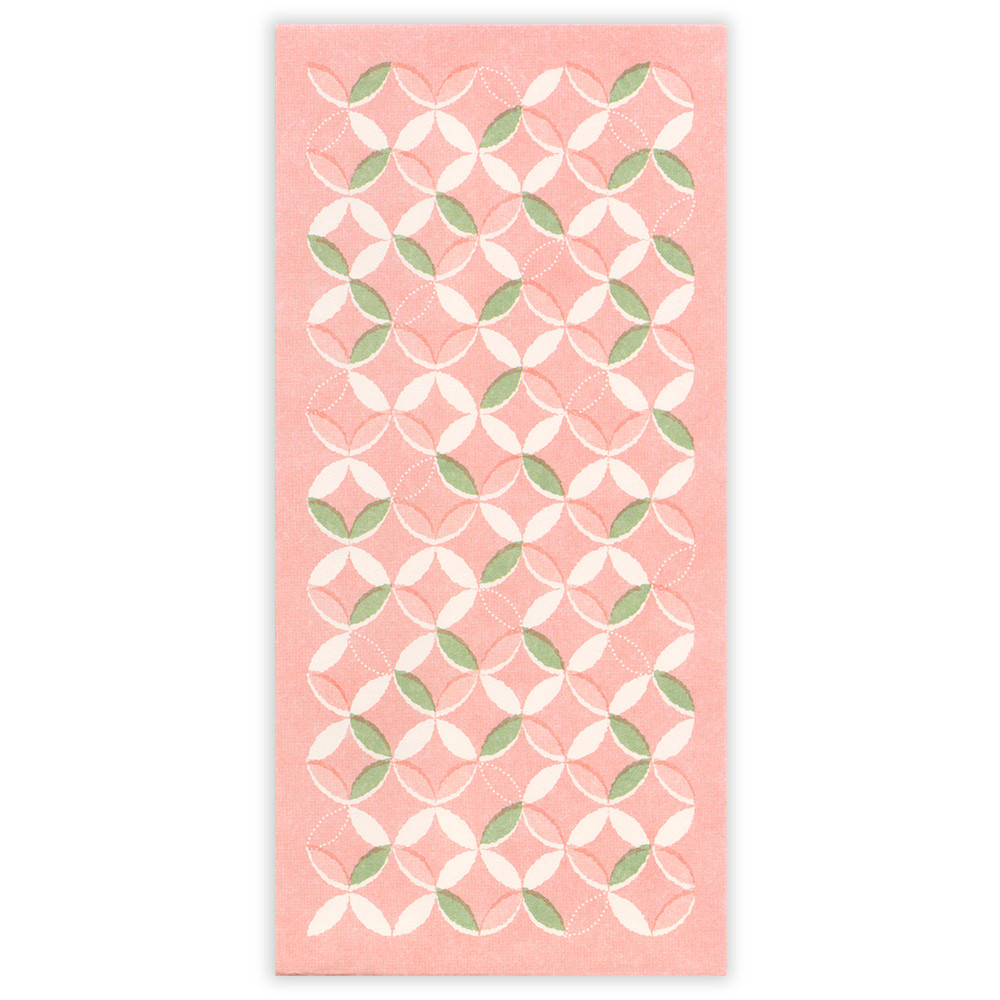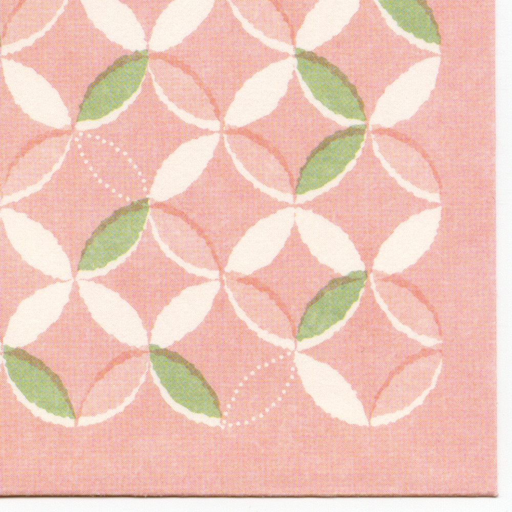 日常になじむ和の色と縁起のいい和紋様を組み合わせたデザイン。かわいらしい桜もち色で七宝柄を描きました。