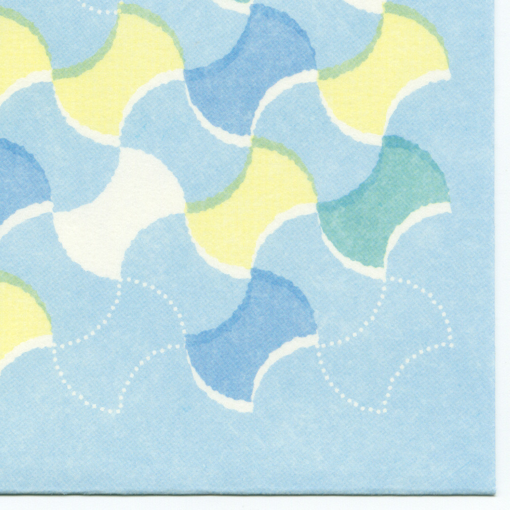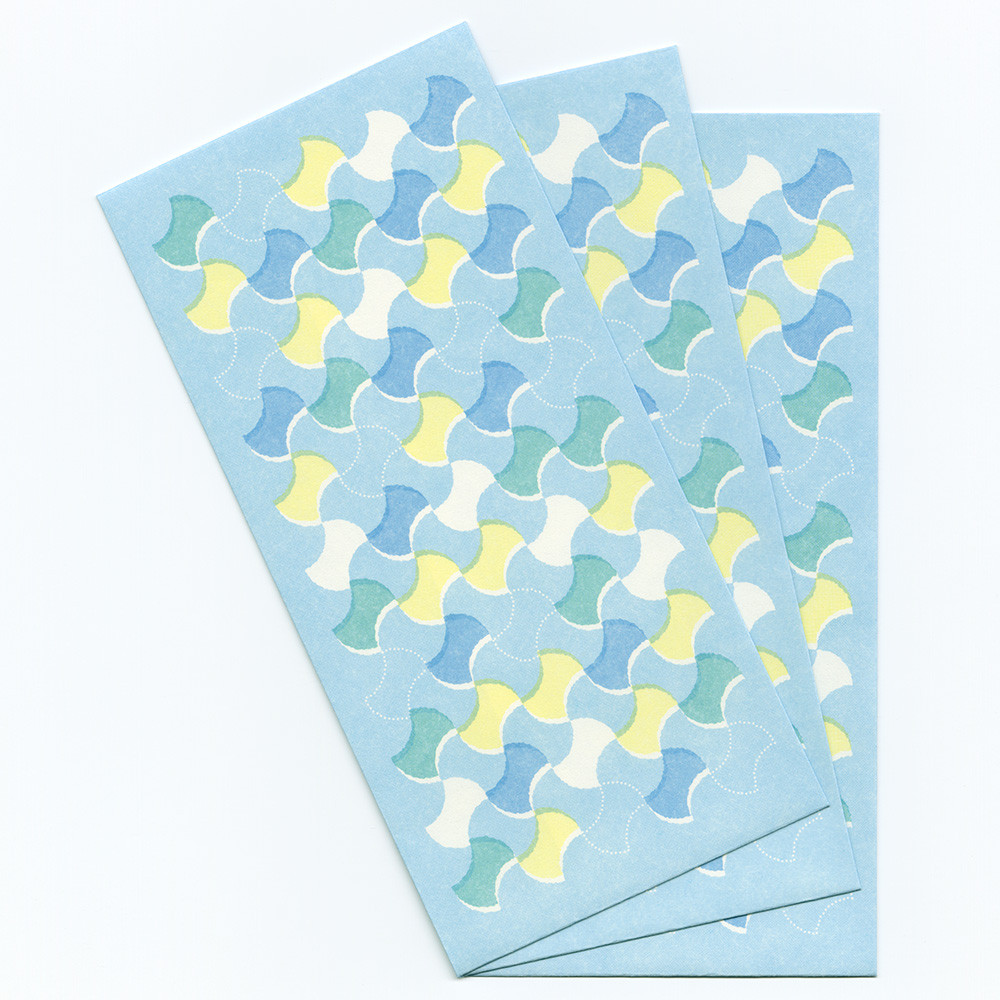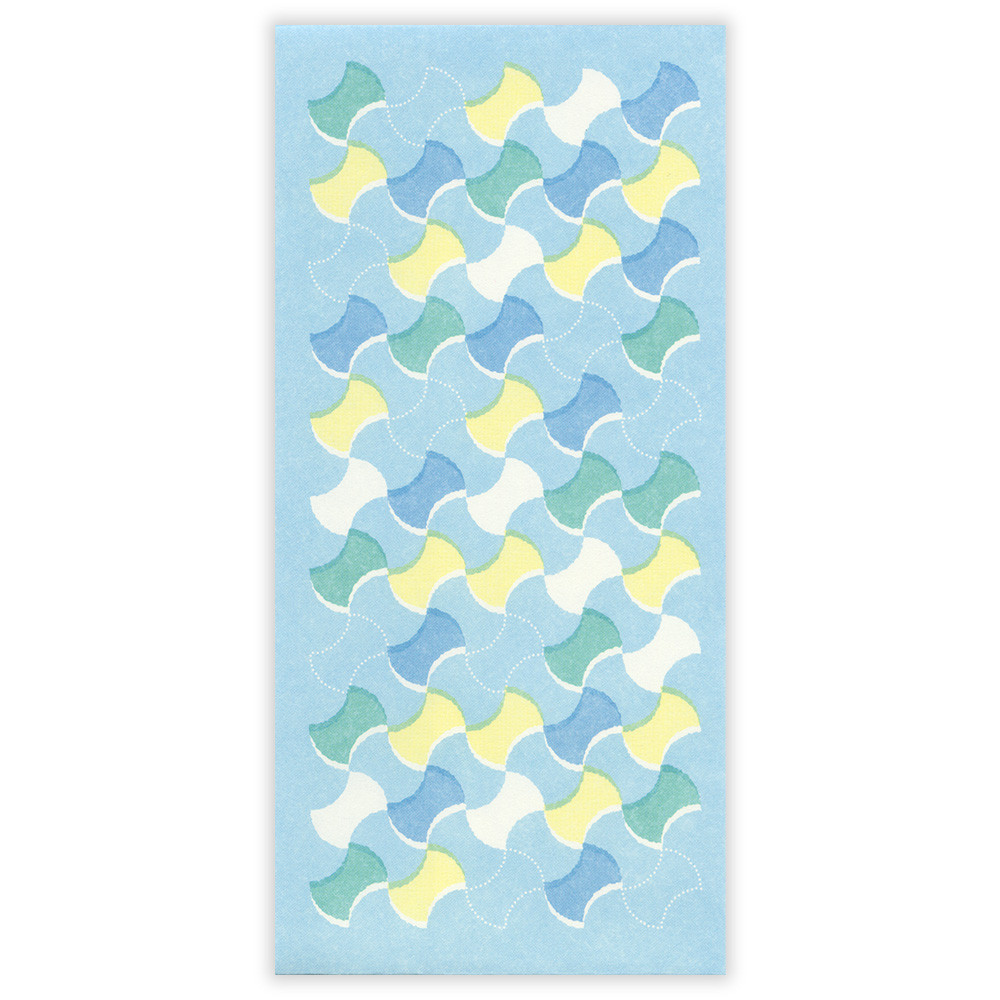 日常になじむ和の色と縁起のいい和紋様を組み合わせたデザイン。爽やかなラムネ色で分銅繋ぎ柄を描きました。