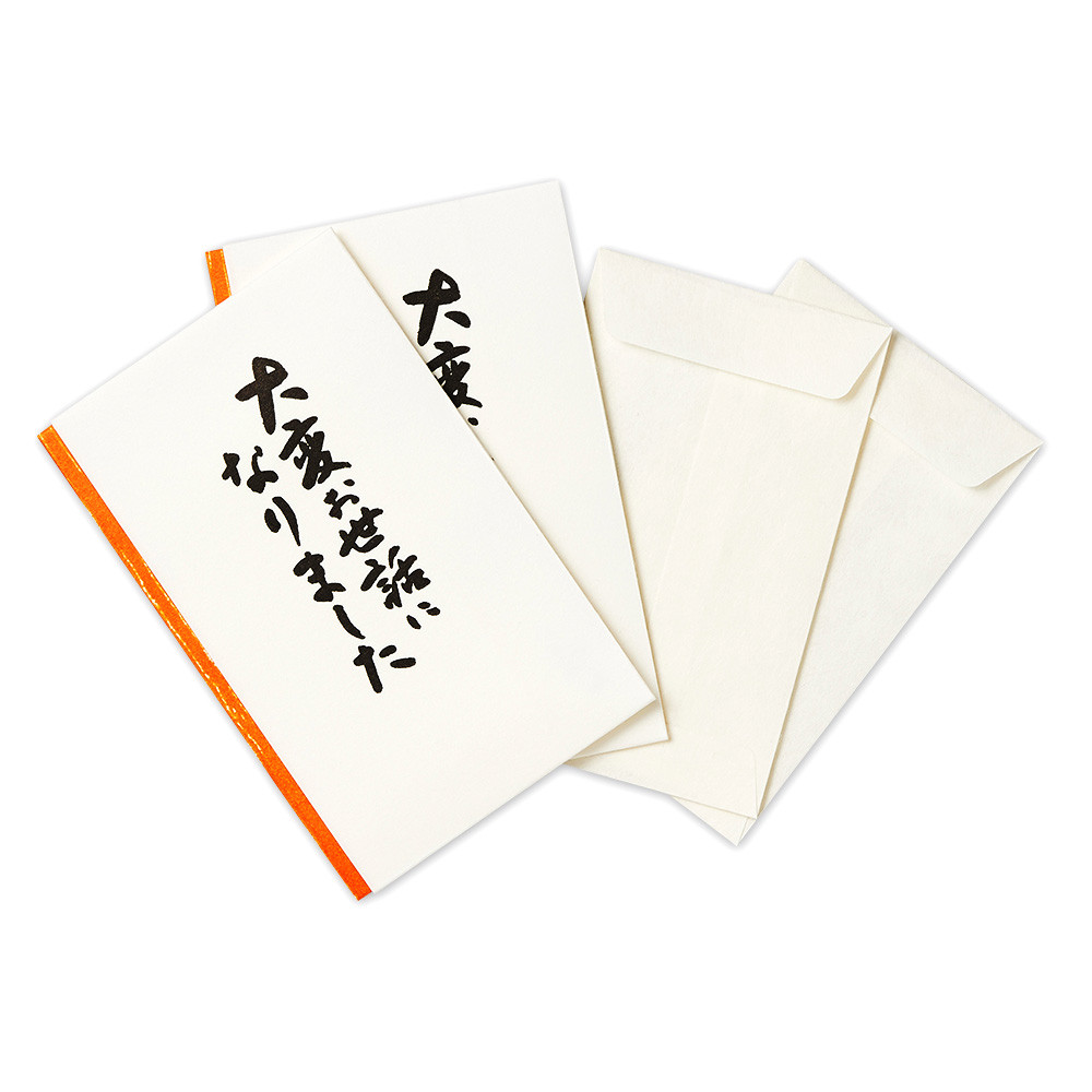 版画用紙に活版印刷でデザインされた「大変お世話になりました」という表書きが印象的です。