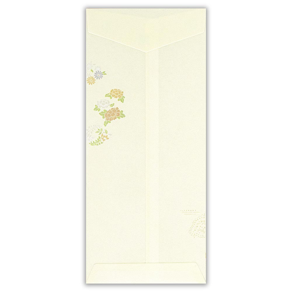 立体感のあるエンボス加工の落ち着いた雰囲気の花のイラストが入った和紙封筒です。 優美な花々が宛名を彩ります。