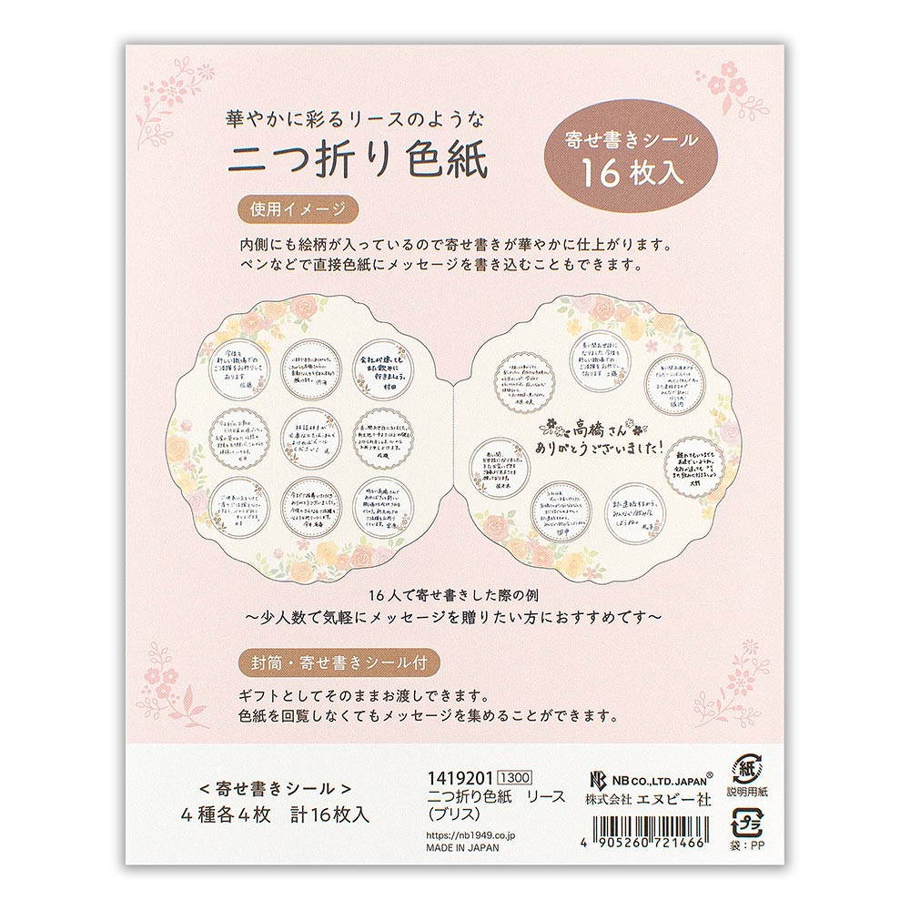 16枚の寄せ書きシール入りで、色紙を回さなくてもメッセージを集めることができます。