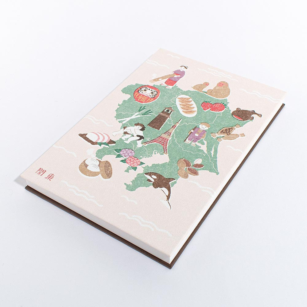 日本全国のご当地名物を描いた御朱印帳です。それぞれの地方をイメージした日本の伝統色で描いています。