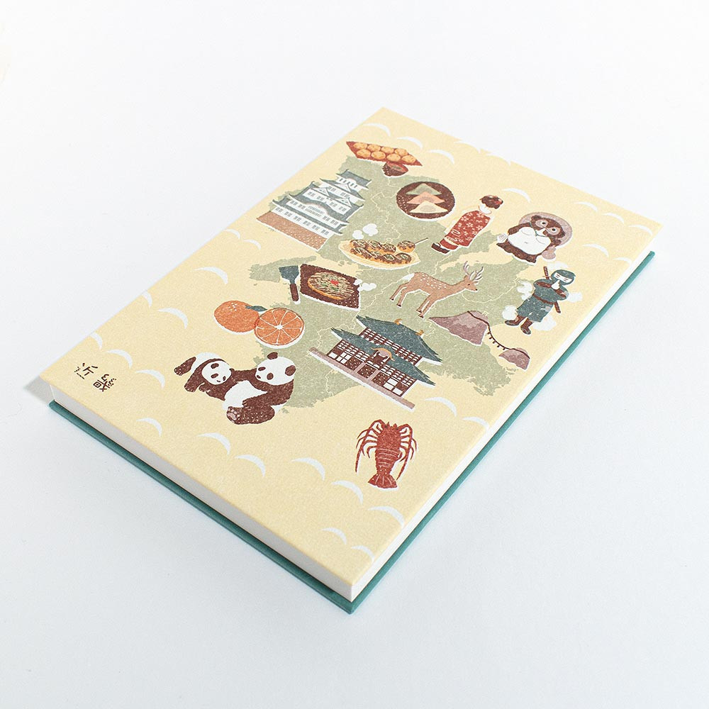 日本全国のご当地名物を描いた御朱印帳です。それぞれの地方をイメージした日本の伝統色で描いています。