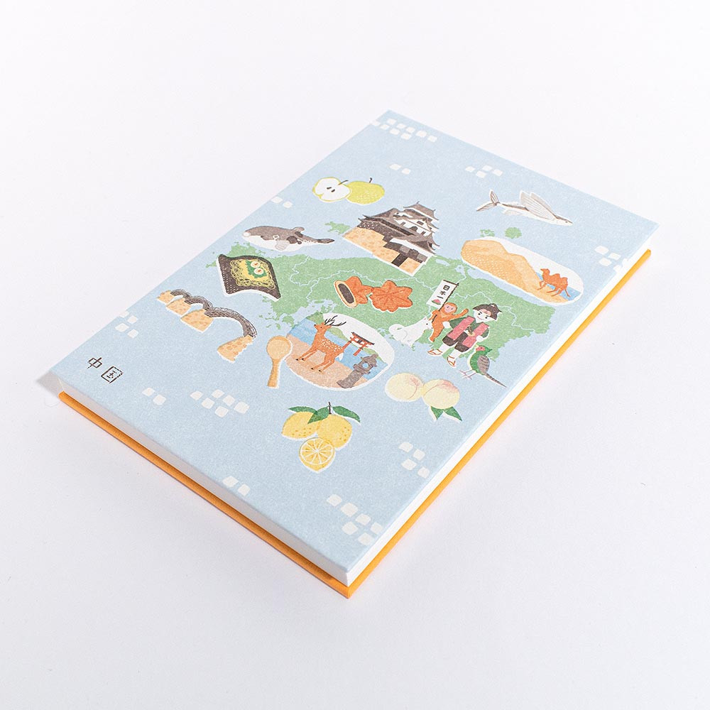 日本全国のご当地名物を描いた御朱印帳です。それぞれの地方をイメージした日本の伝統色で描いています。