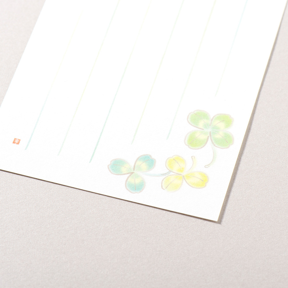 送る相手を選ばないラッキーモチーフとして人気のクローバーを優しいタッチで描きました。