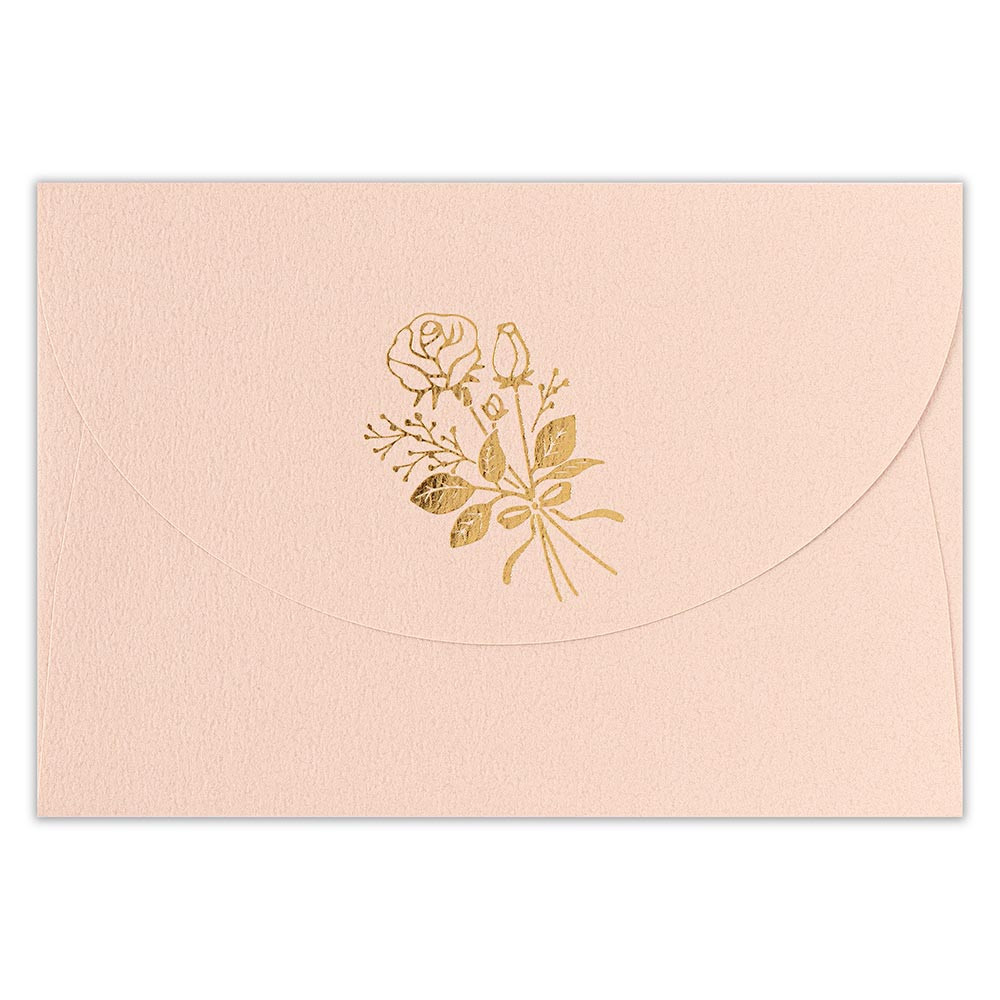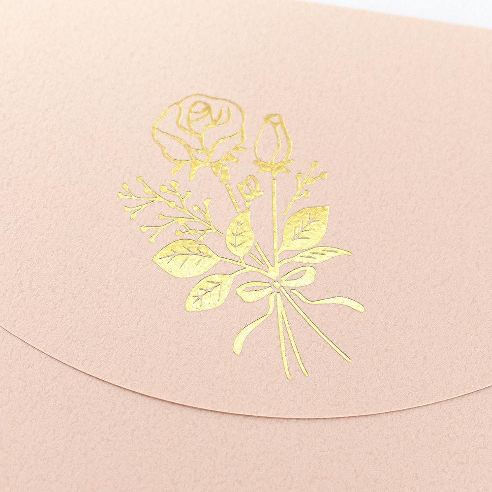 「感謝」の花言葉を持つピンクのバラを金箔押し加工で表現しました。