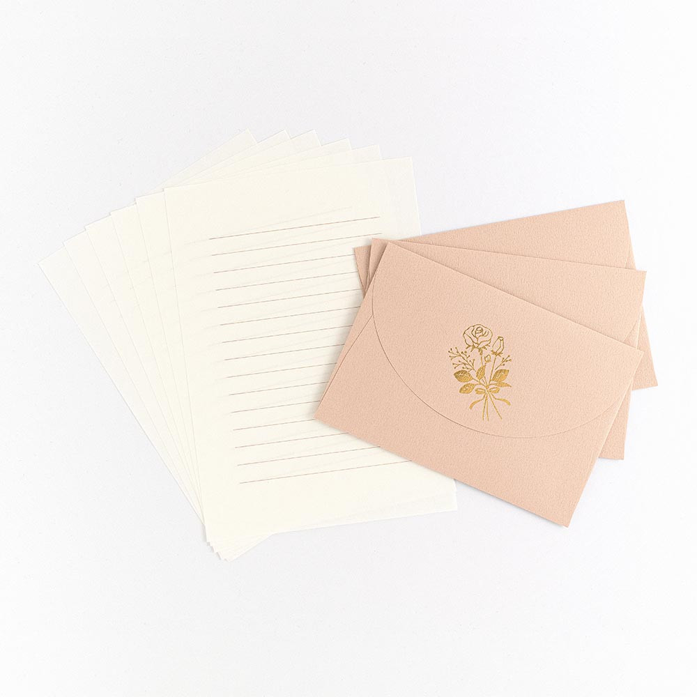封筒のフラップに、きらりと輝くお花をデザインしたレターセット。
